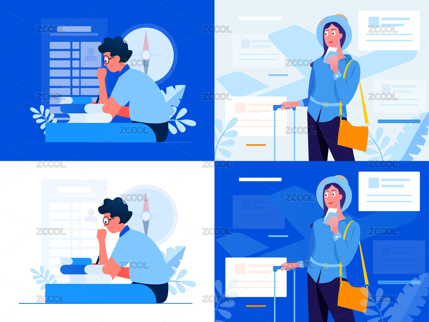 努力學習和去旅游,扁平矢量人物場景創(chuàng)意概念插畫