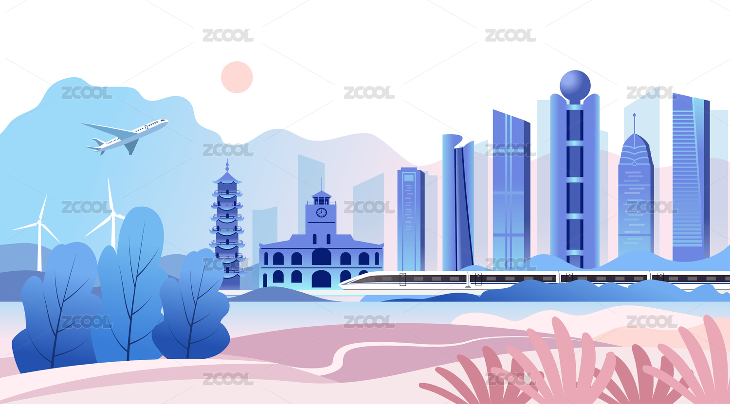 中國江蘇省無錫市城市旅游景觀矢量插畫粉色