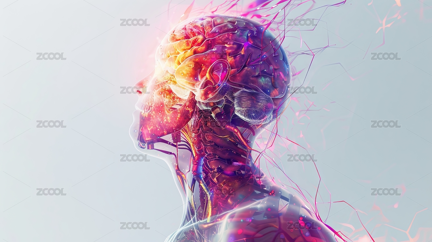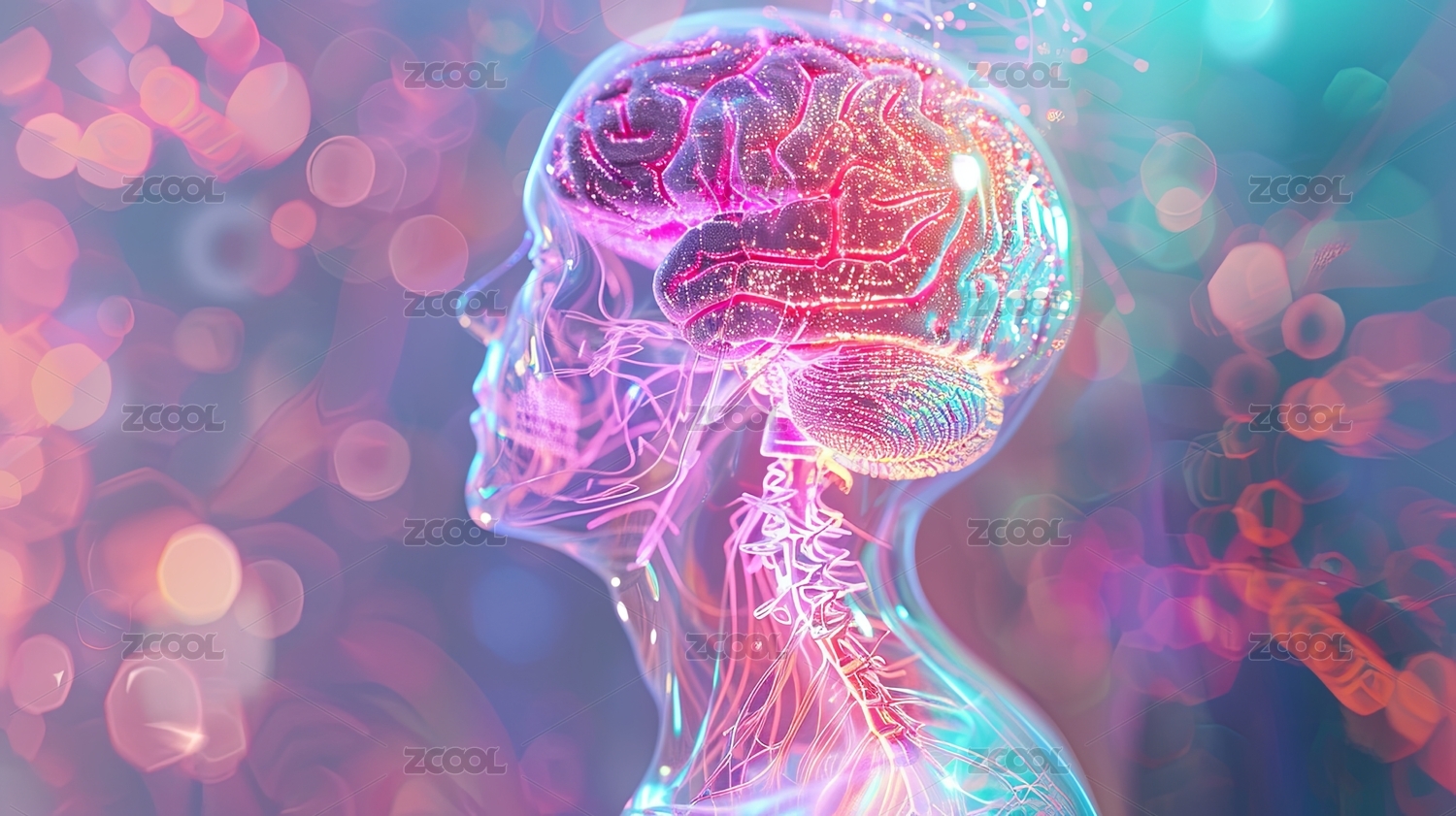 流彩大腦結(jié)構(gòu)醫(yī)學(xué)腦科學(xué)三維插畫