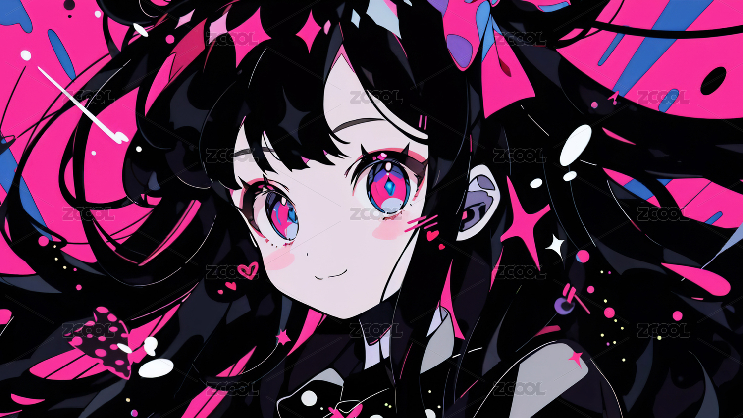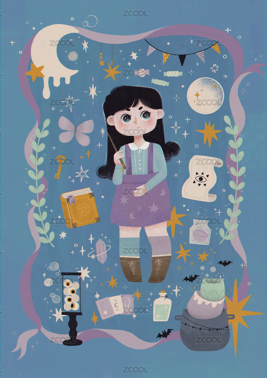 可愛黑色長發(fā)魔法少女和魔法小物品