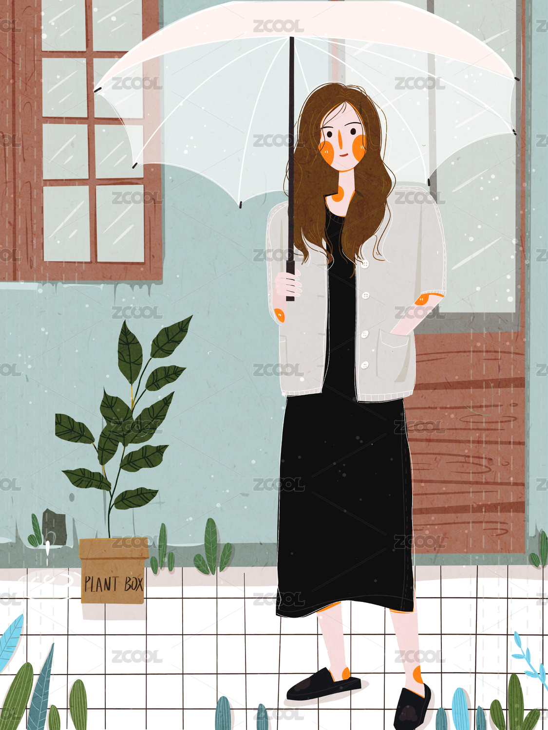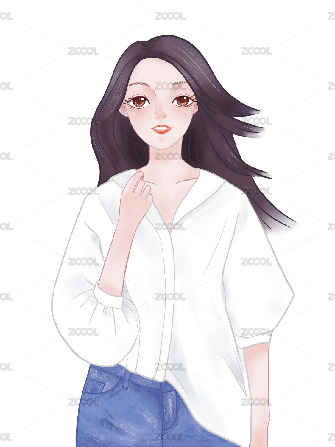 貓耳虎牙黑色連衣裙性感可愛長發(fā)少女插畫