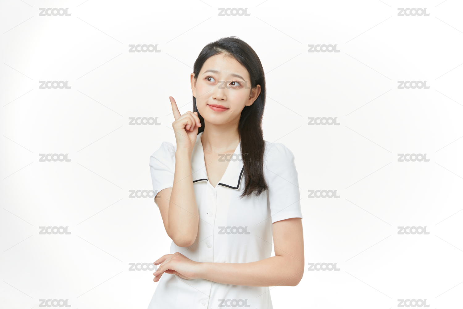 黑色長發(fā)的女生開心的微笑著做手勢拜年賀喜