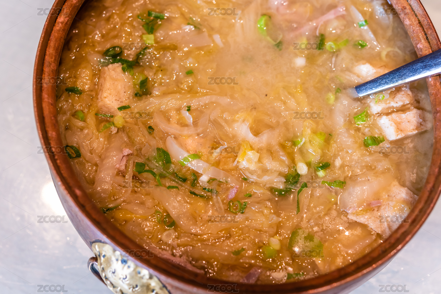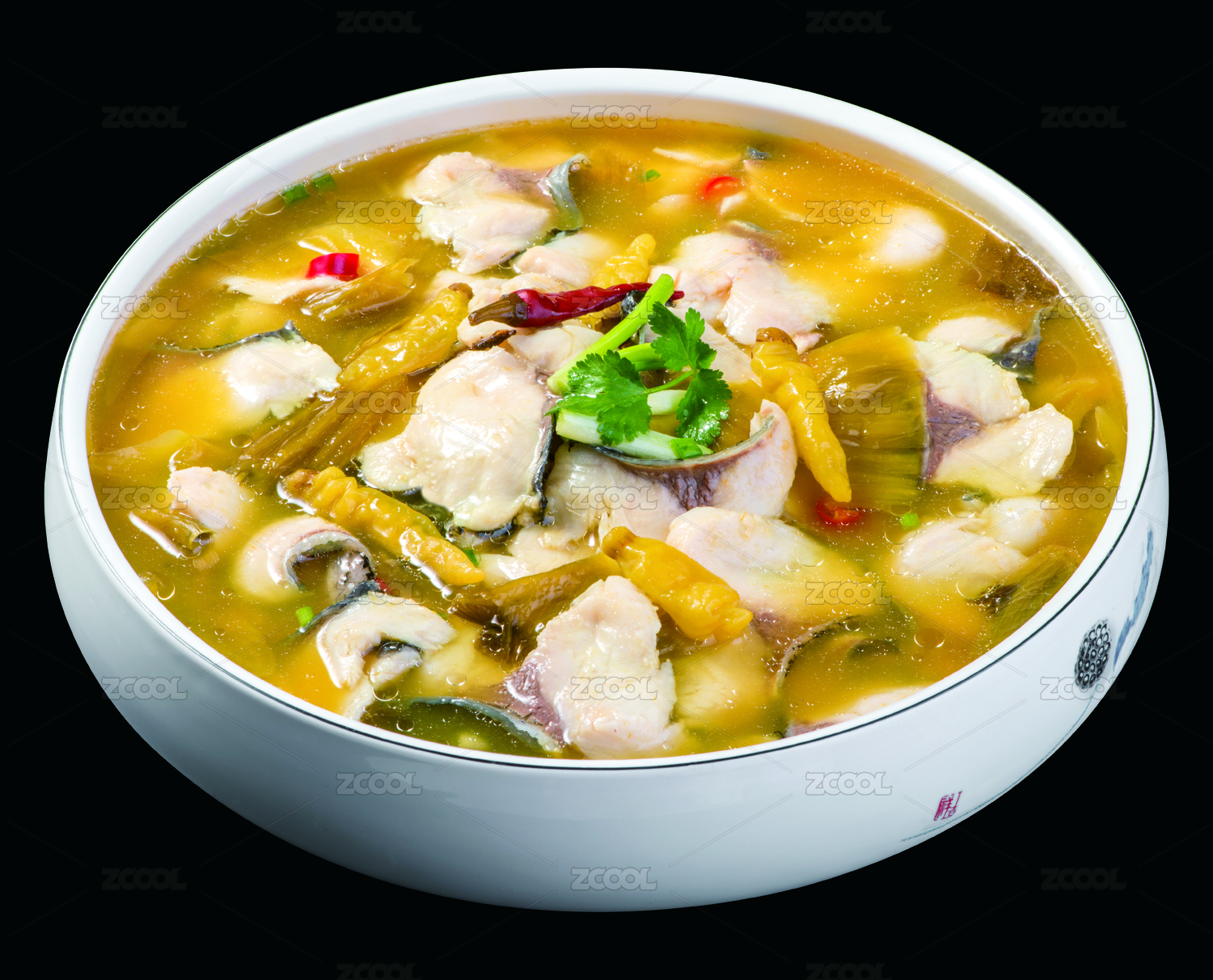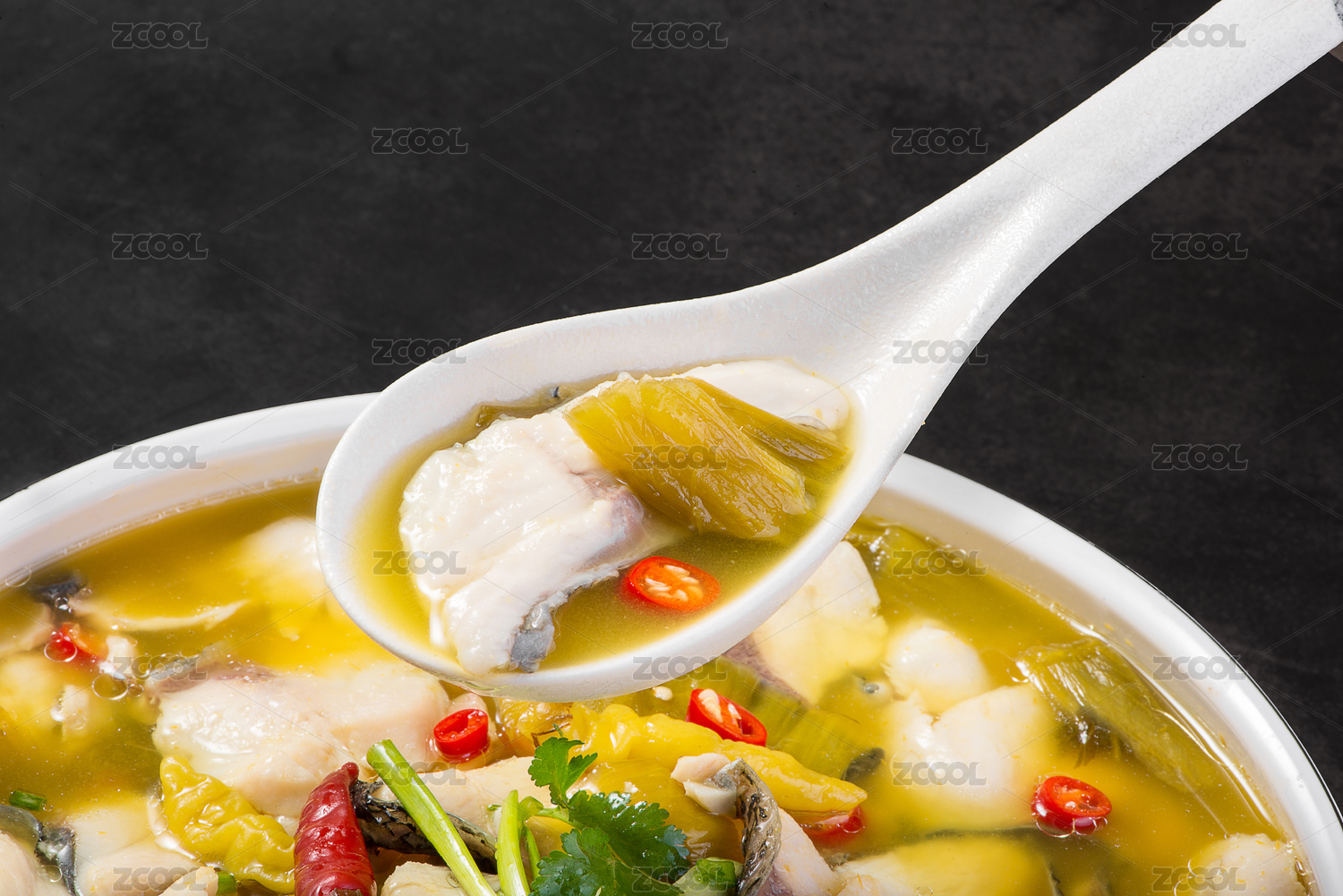 中國重慶菜金黃色酸辣可口的酸菜魚特寫