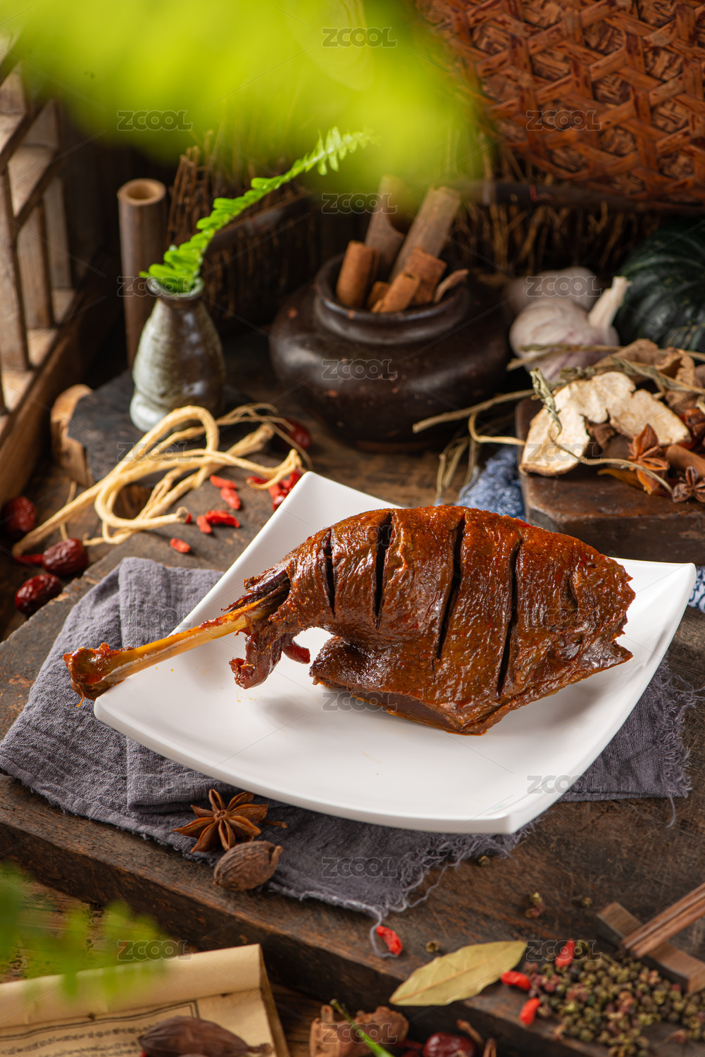 餐盤里的鹵鴨腿