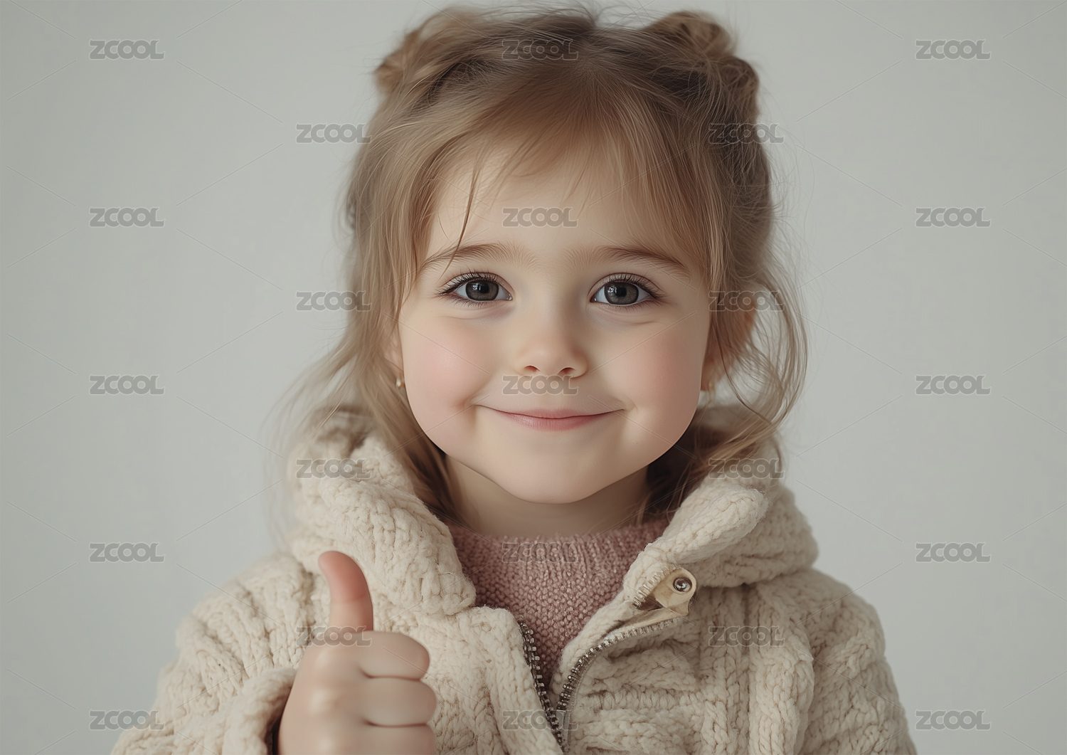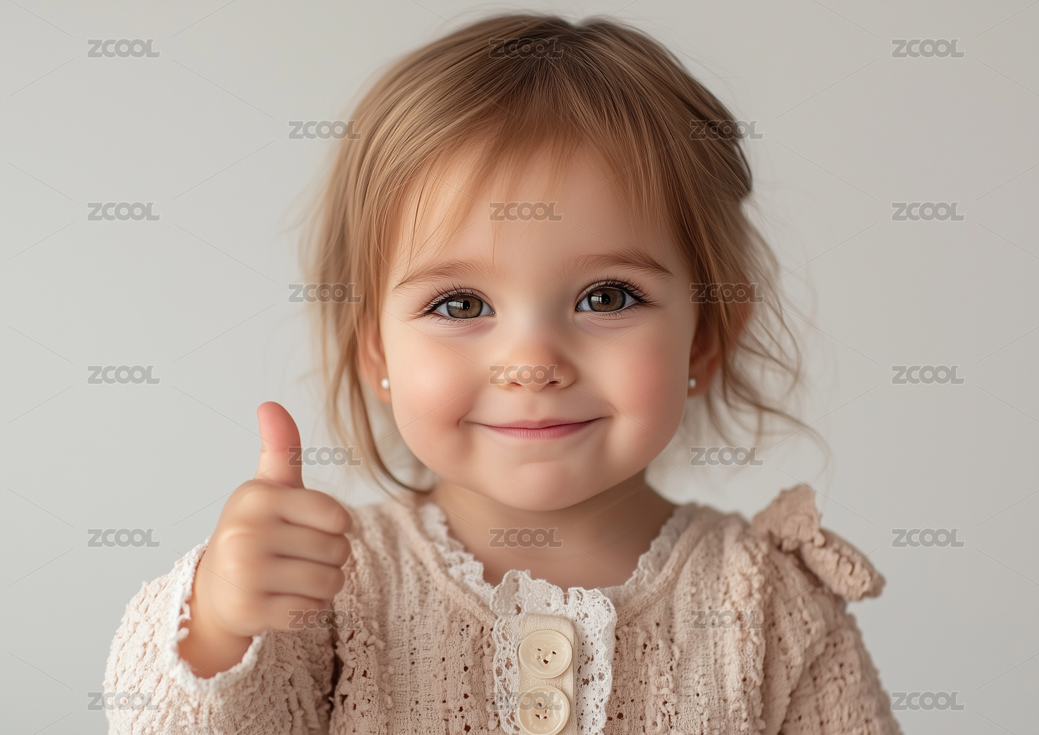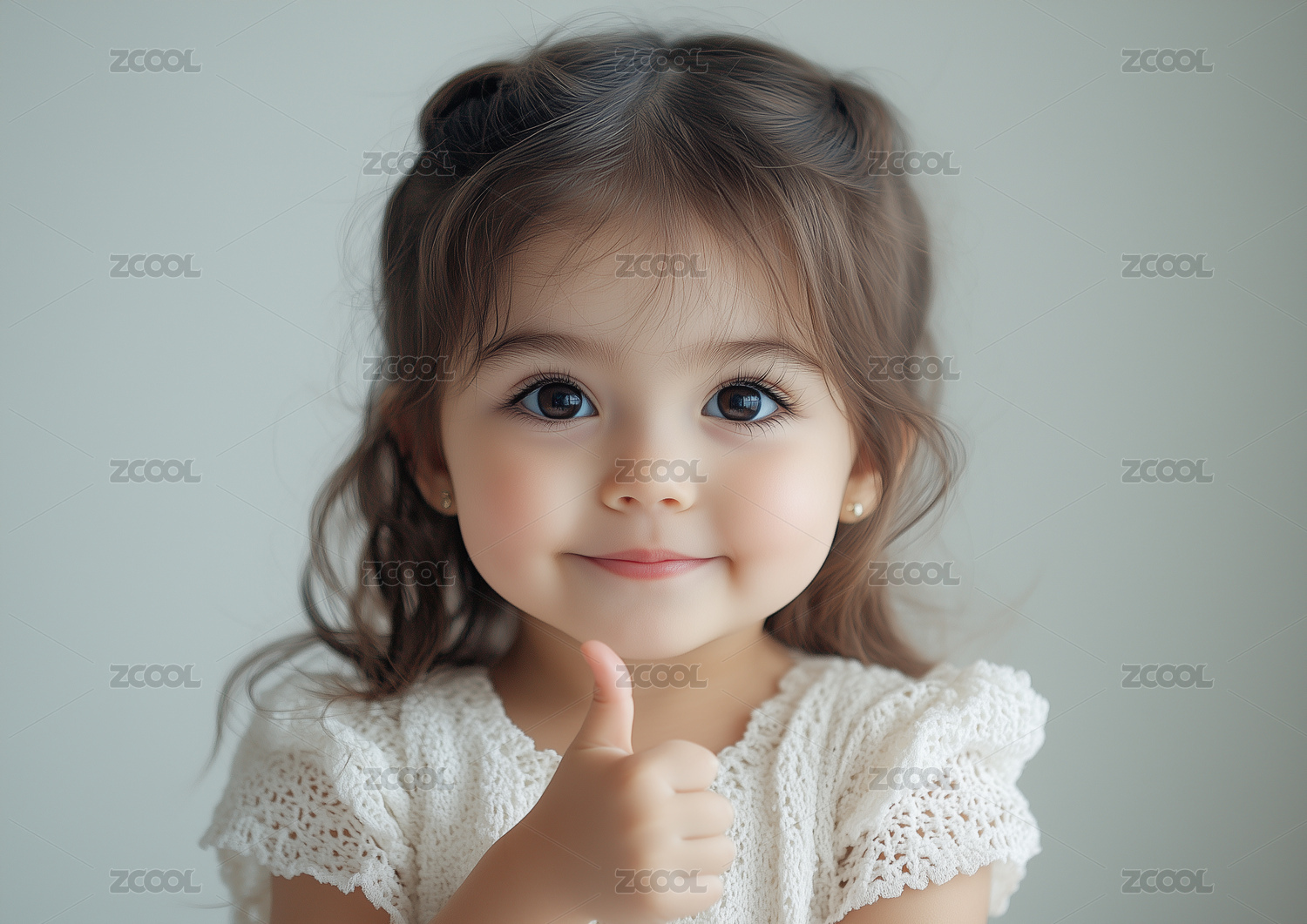 一個可愛的小女孩豎起大拇指
