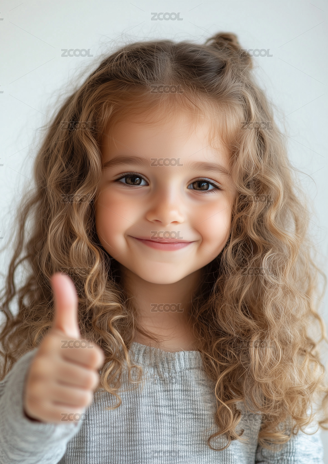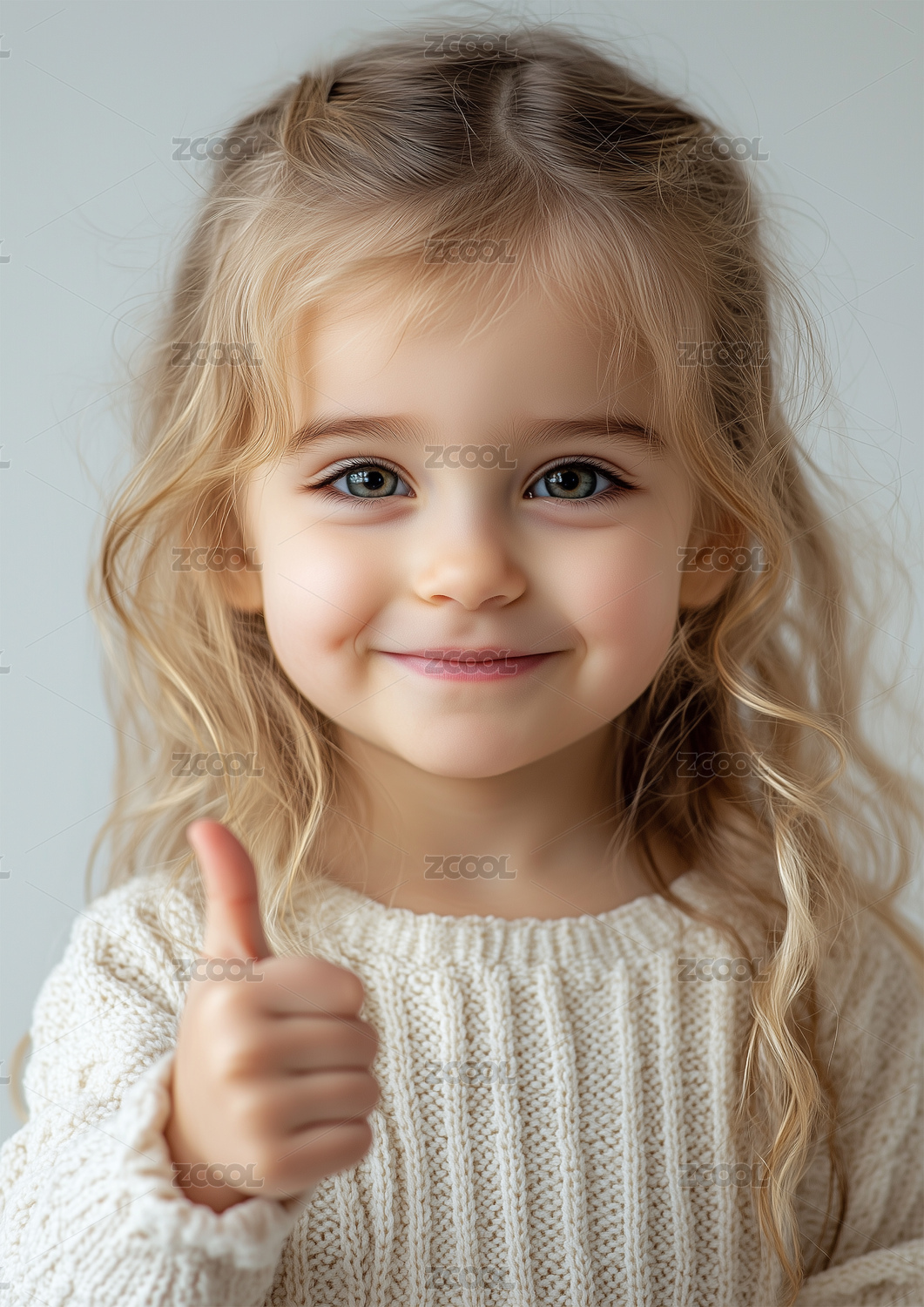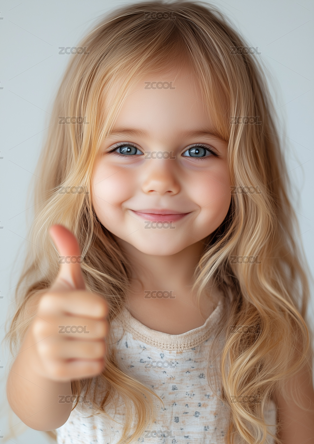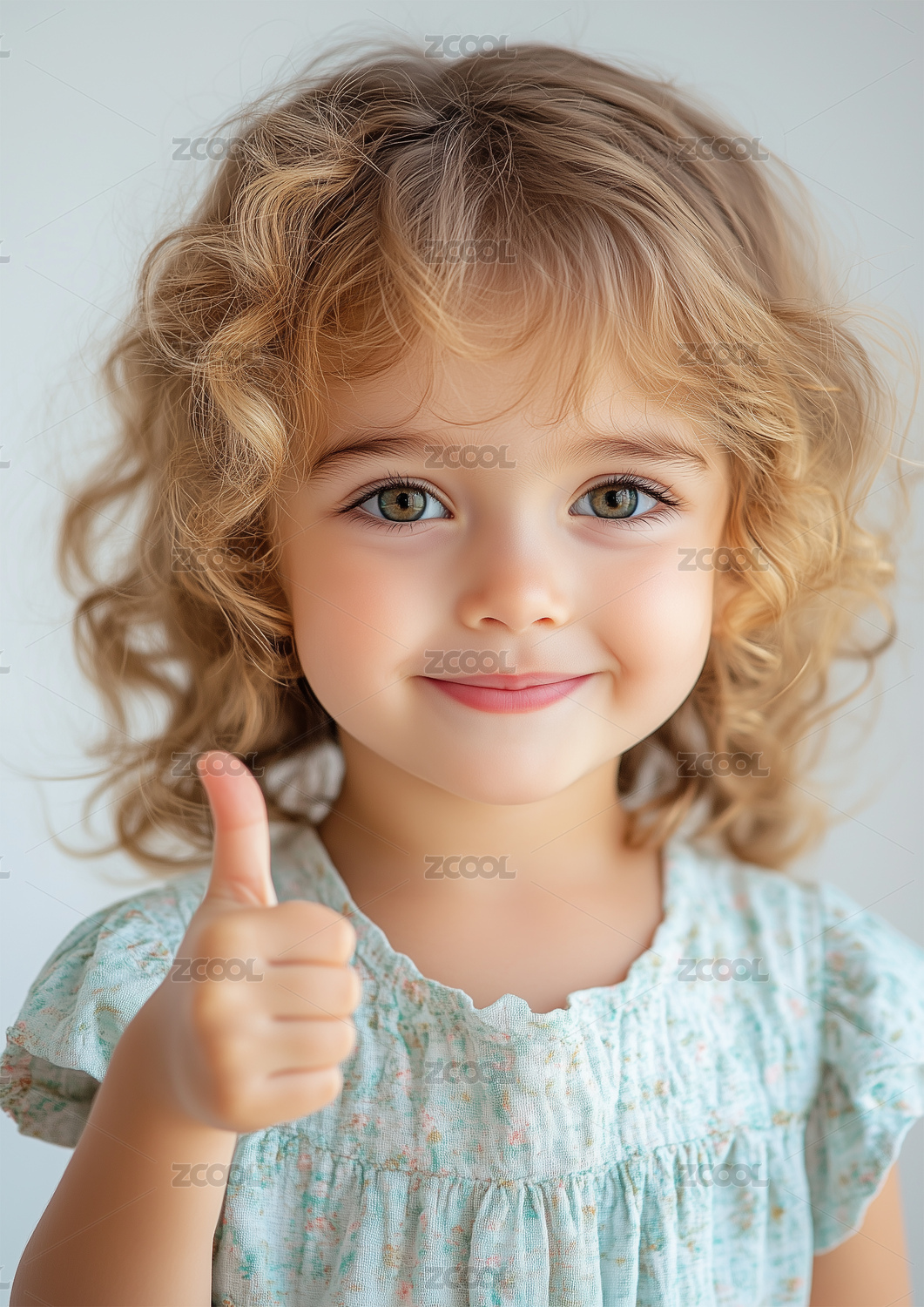 一個可愛的小女孩豎起大拇指