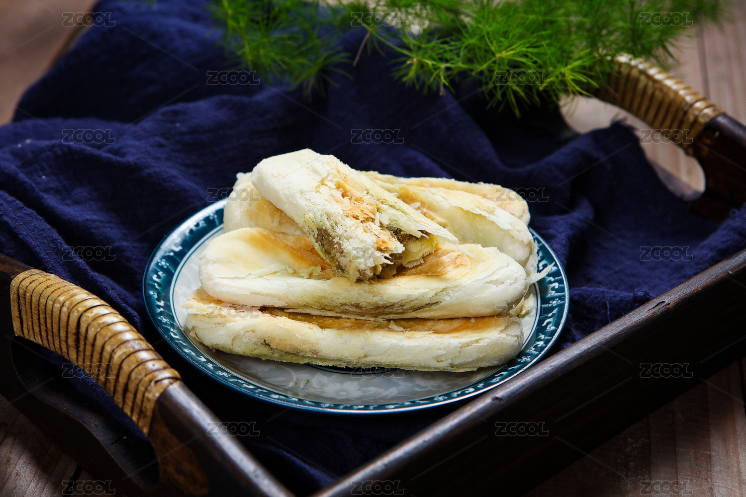 低角度拍攝放在托盤里的中國北京傳統(tǒng)美食牛舌餅