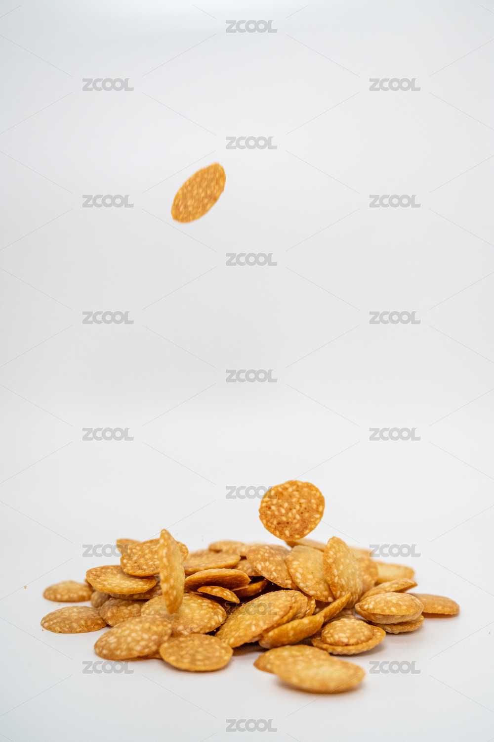 特寫拍攝一堆黑芝麻薄脆餅干