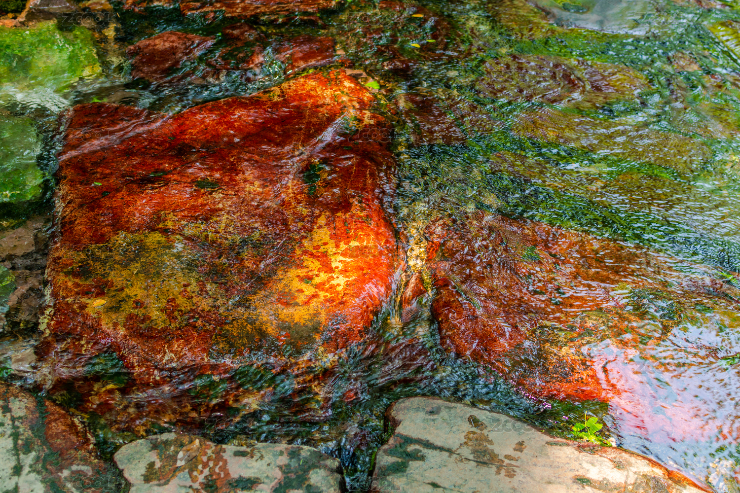 中國浙江杭州九溪十八澗的紅色溪水石塊
