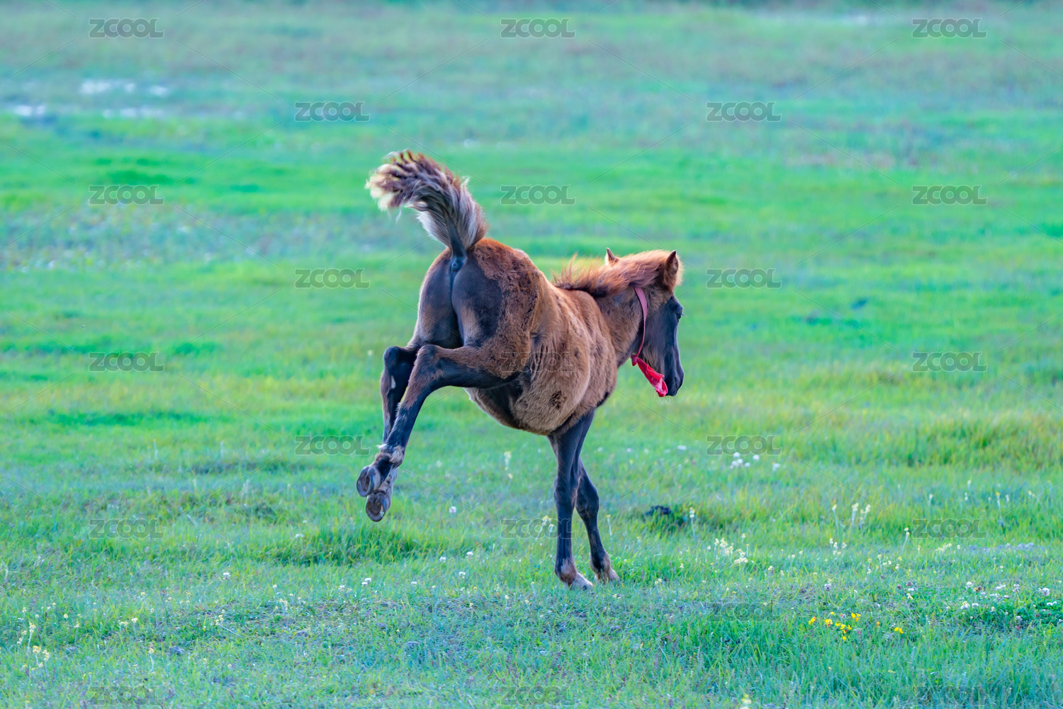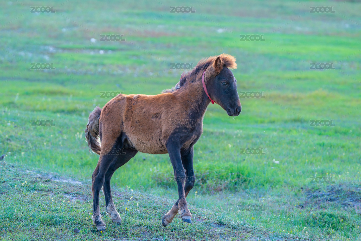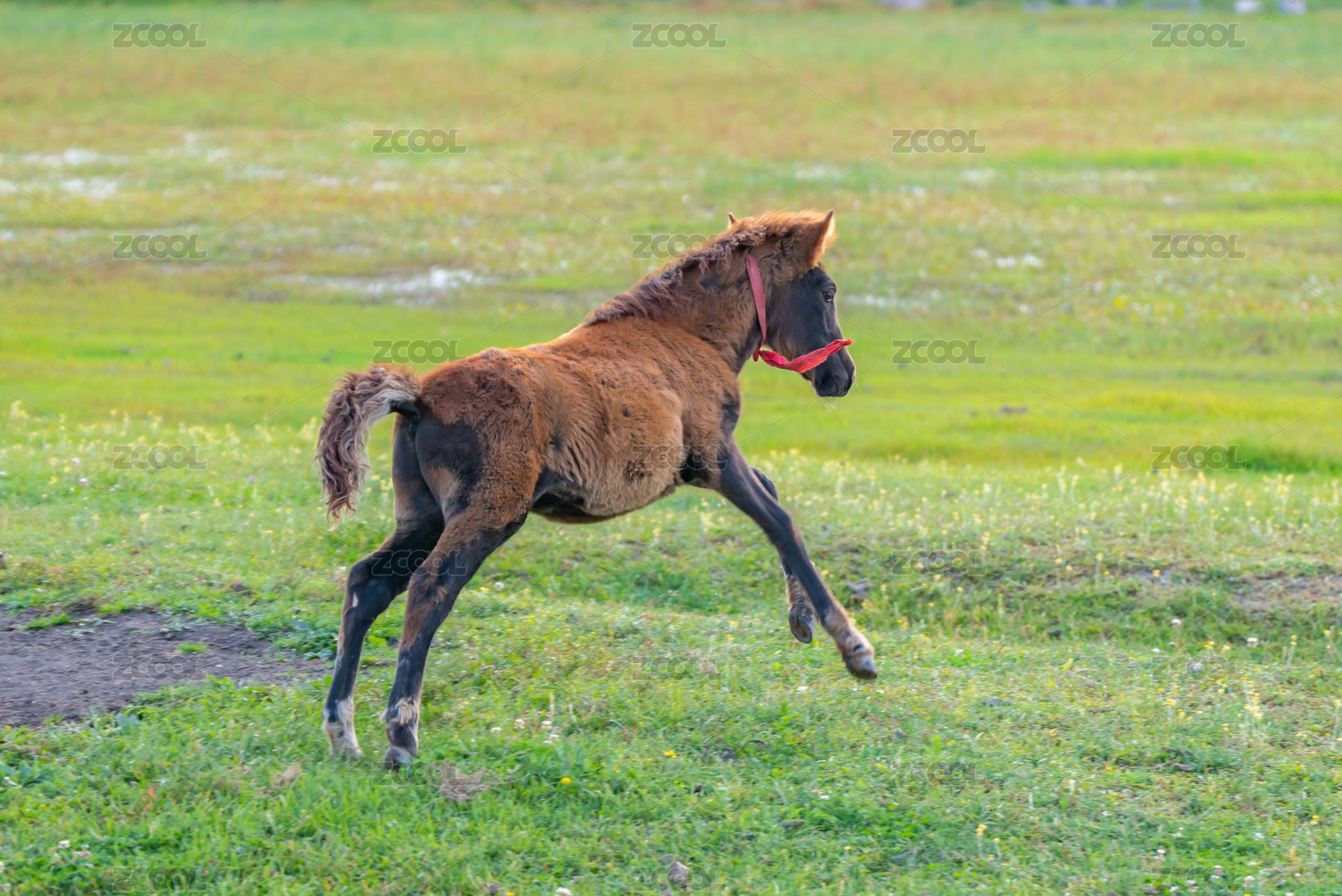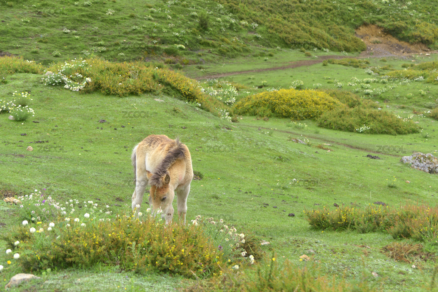 四川甘孜道孚縣八美草原 春天吃草的小馬駒