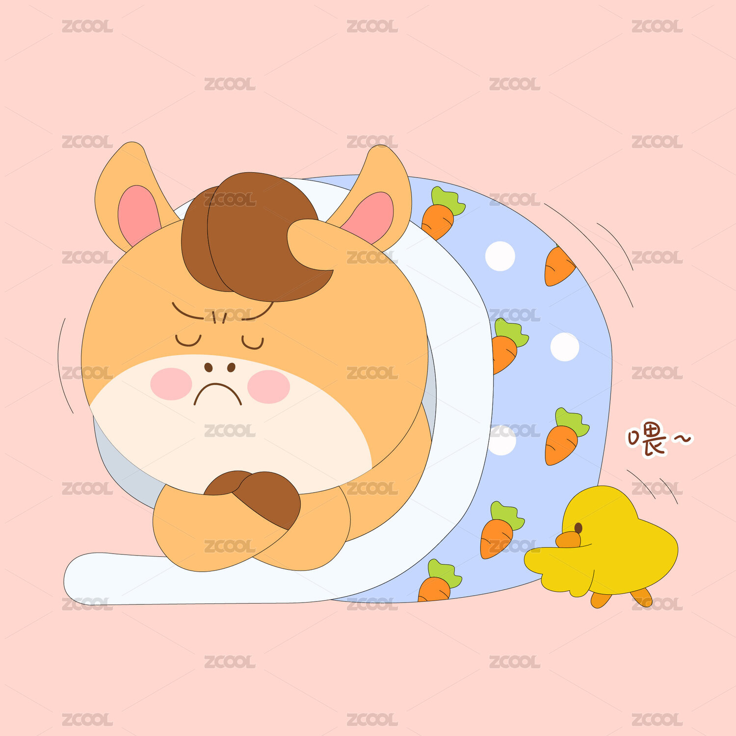 小馬駒不和你說話被窩生悶氣表情包插畫