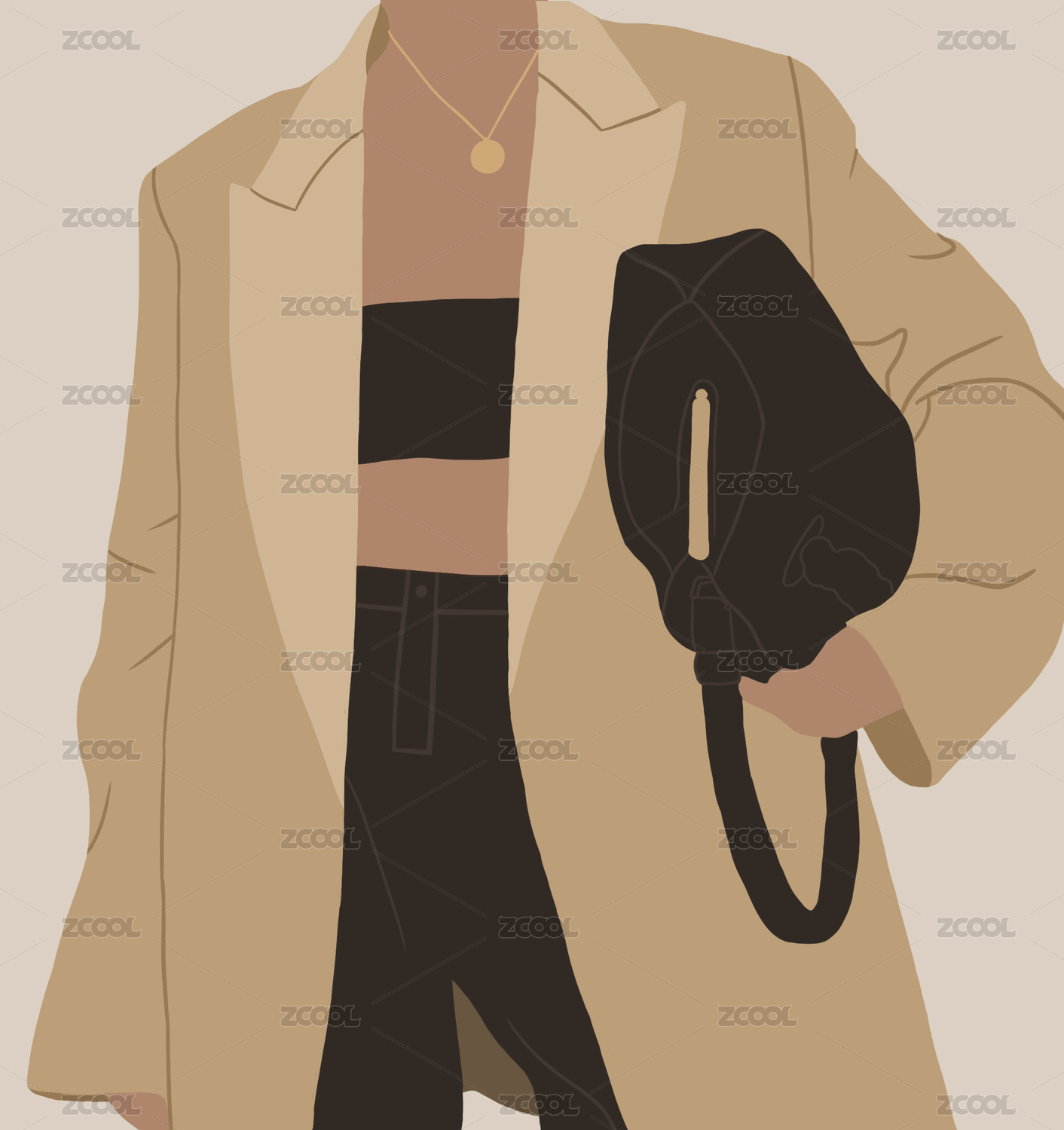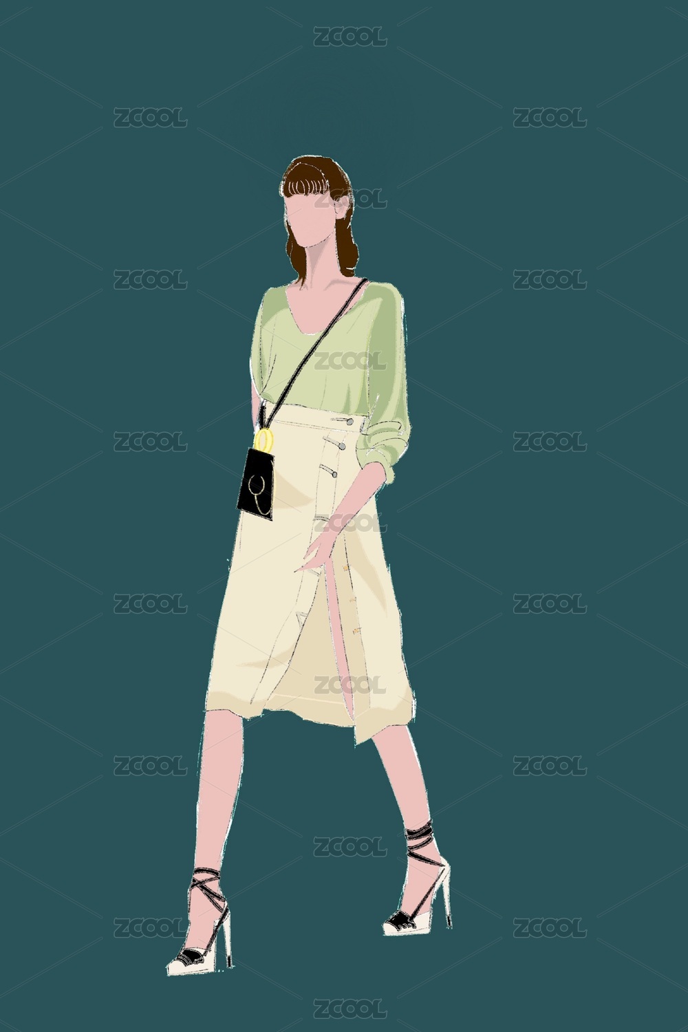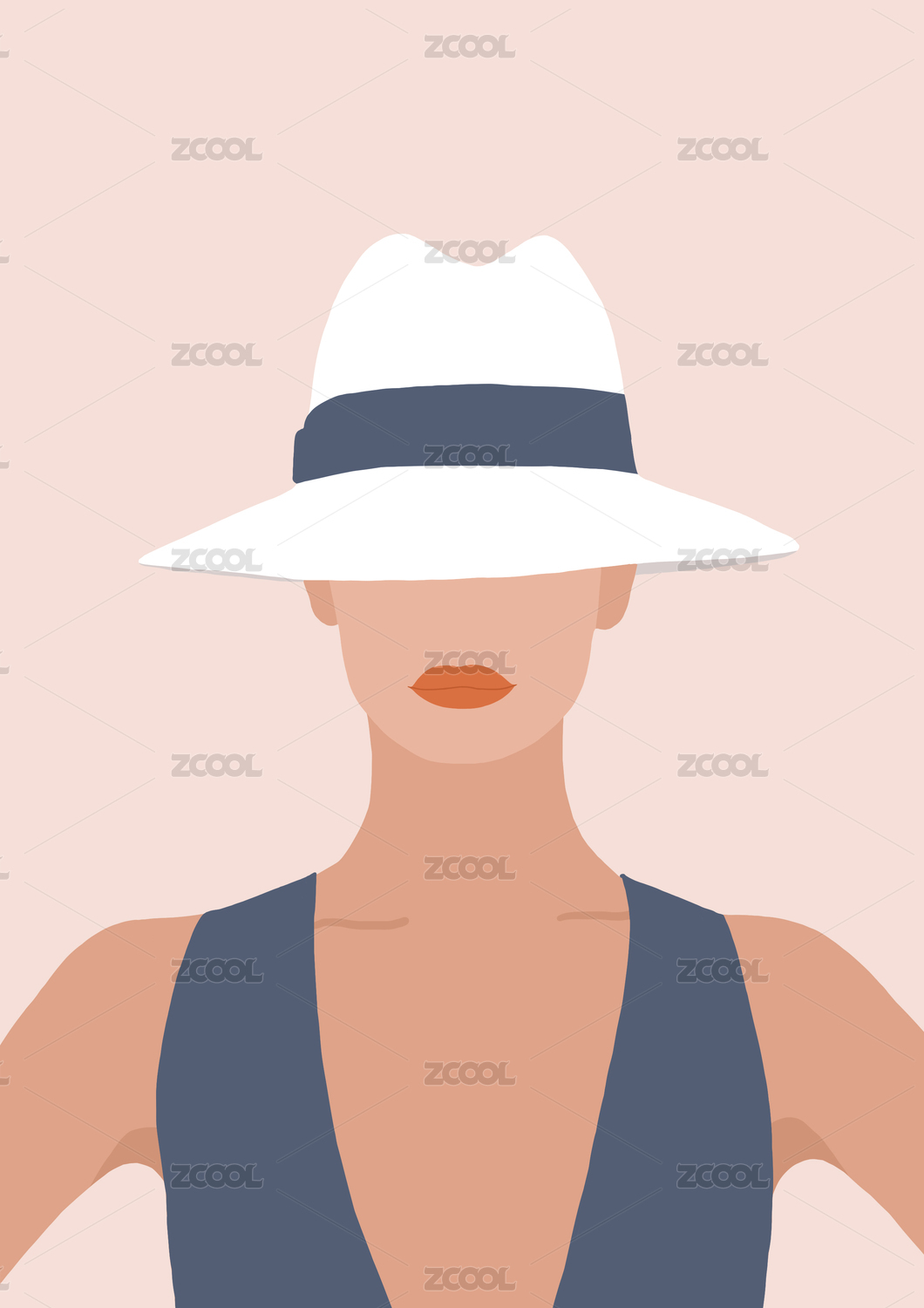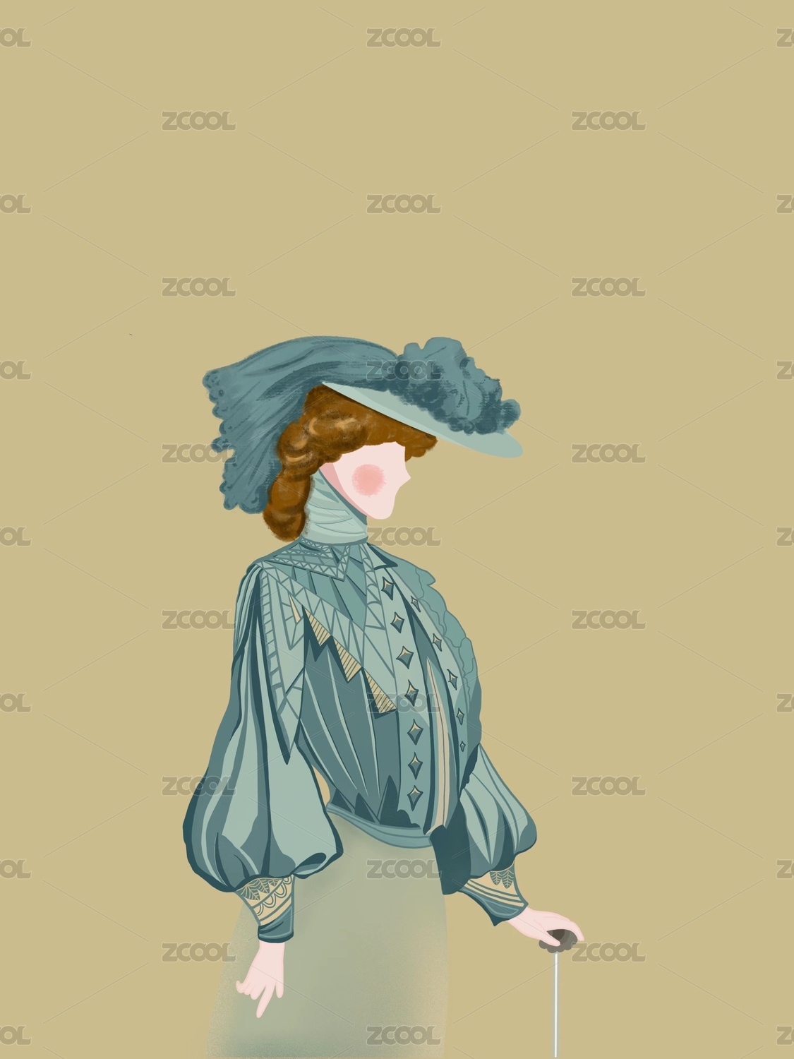 白底藍紫禮服氣質(zhì)女郎時尚插畫