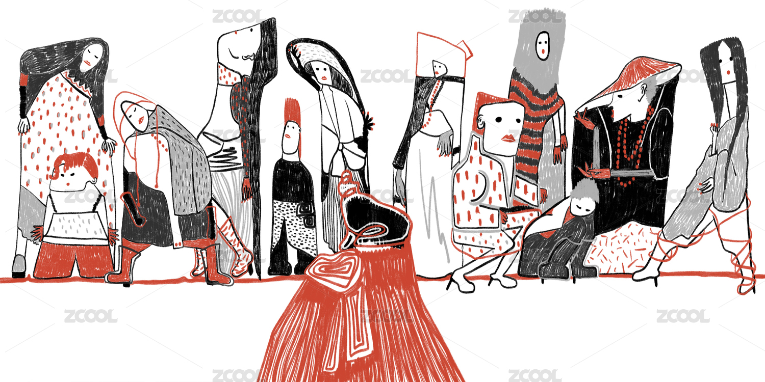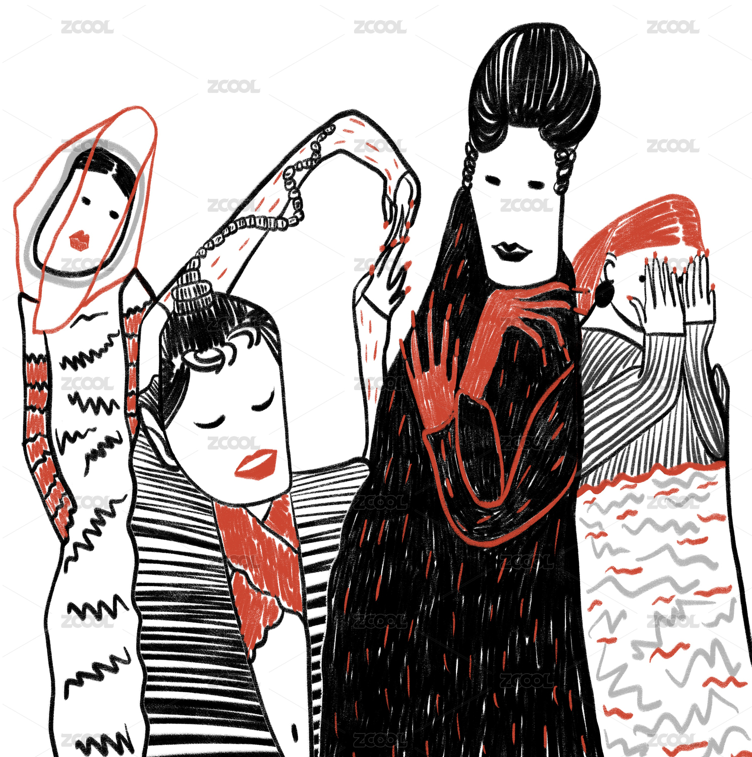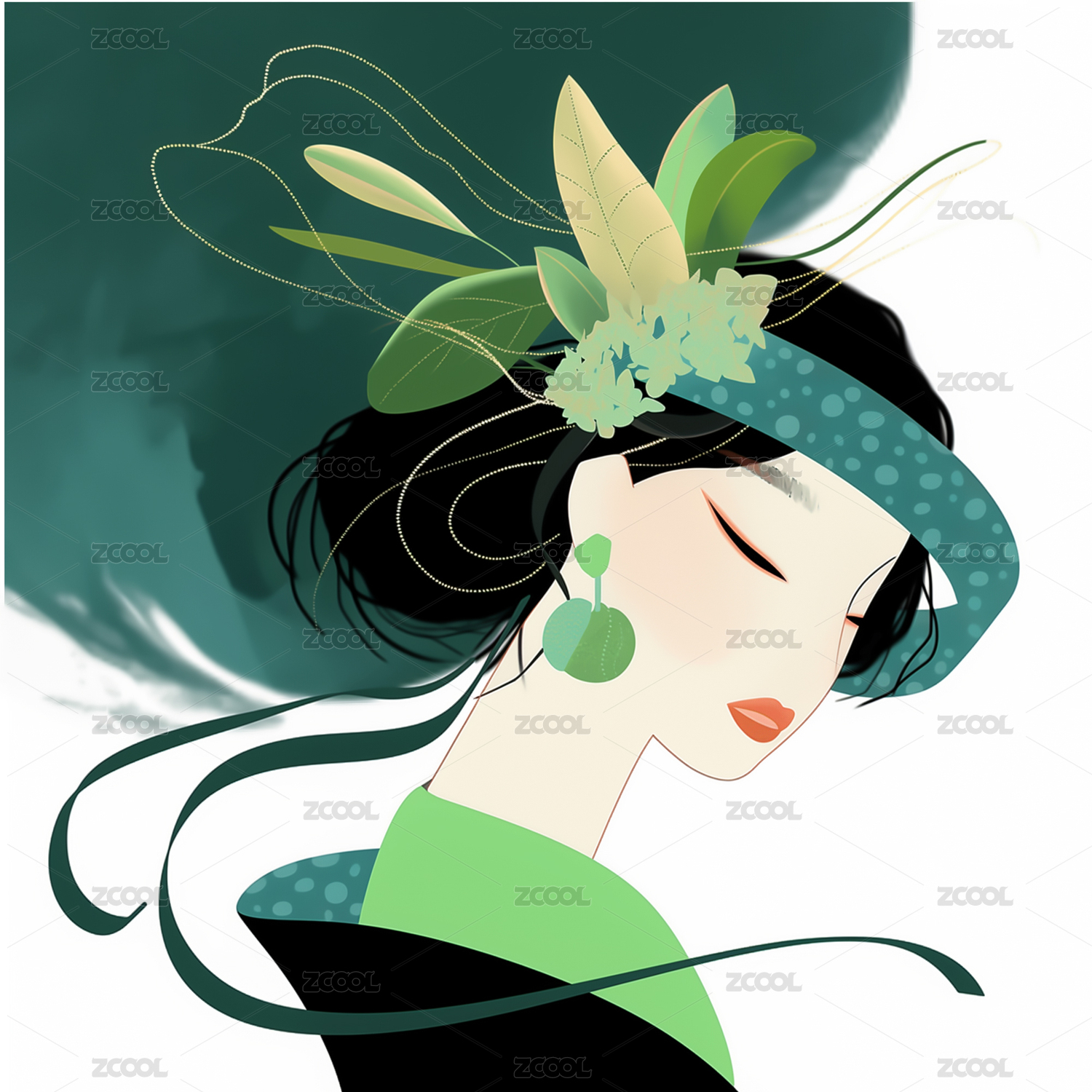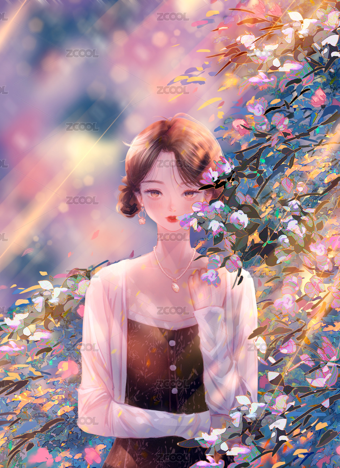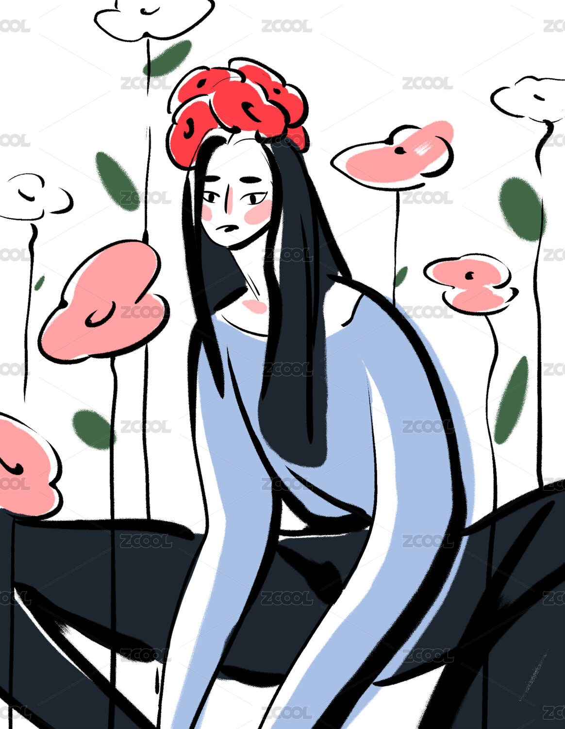 白底藍紫禮服氣質(zhì)女郎時尚插畫