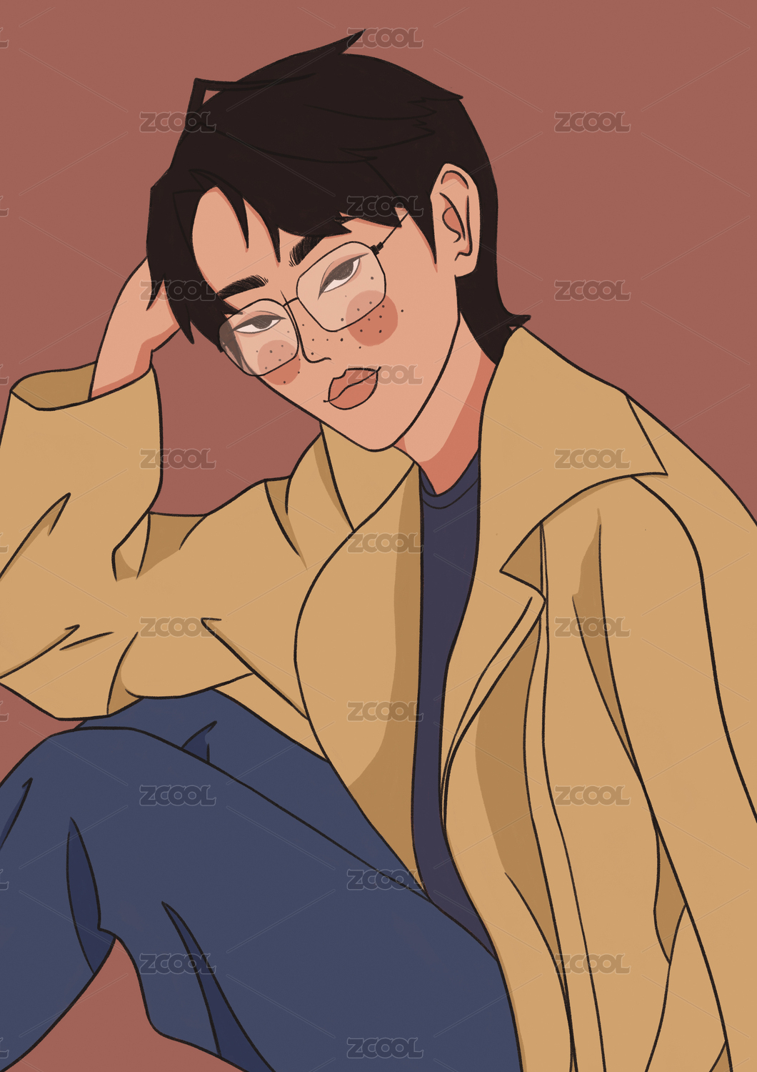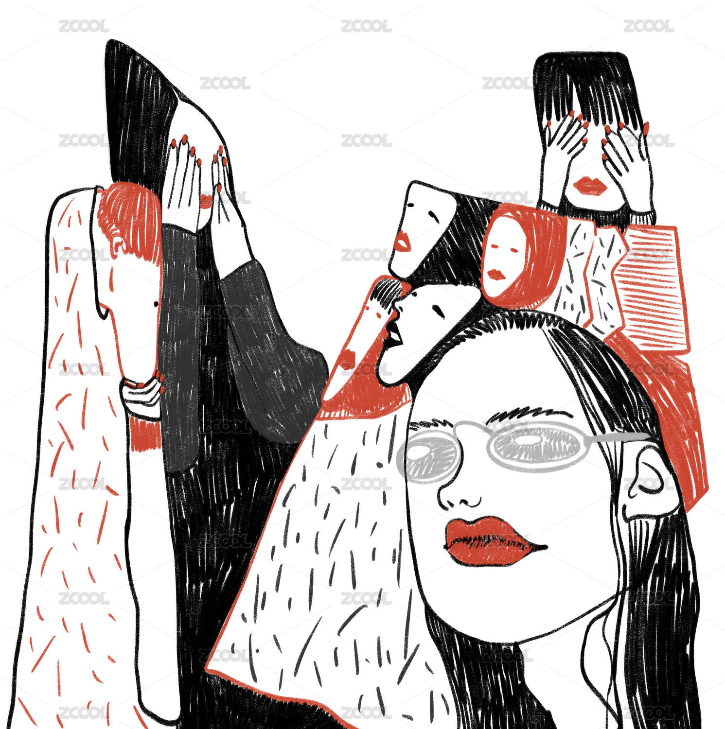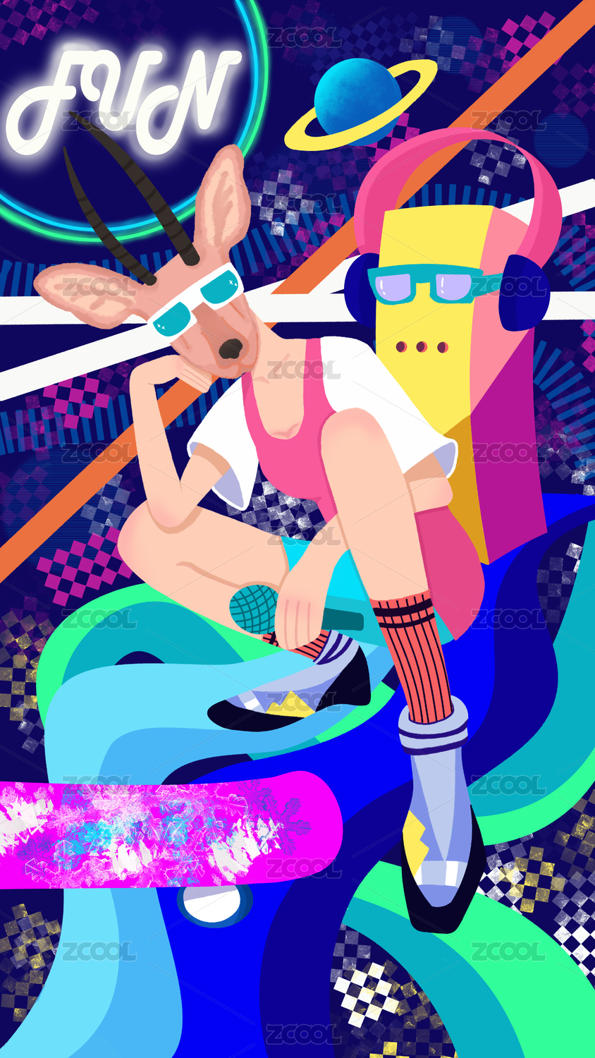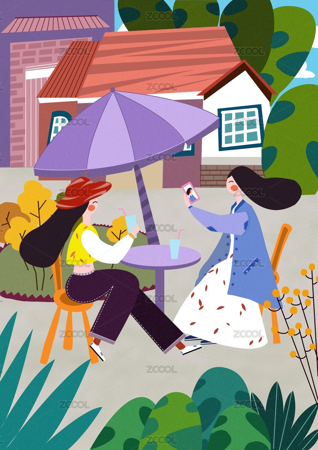 創(chuàng)意時尚插畫喝飲料自拍的女孩
