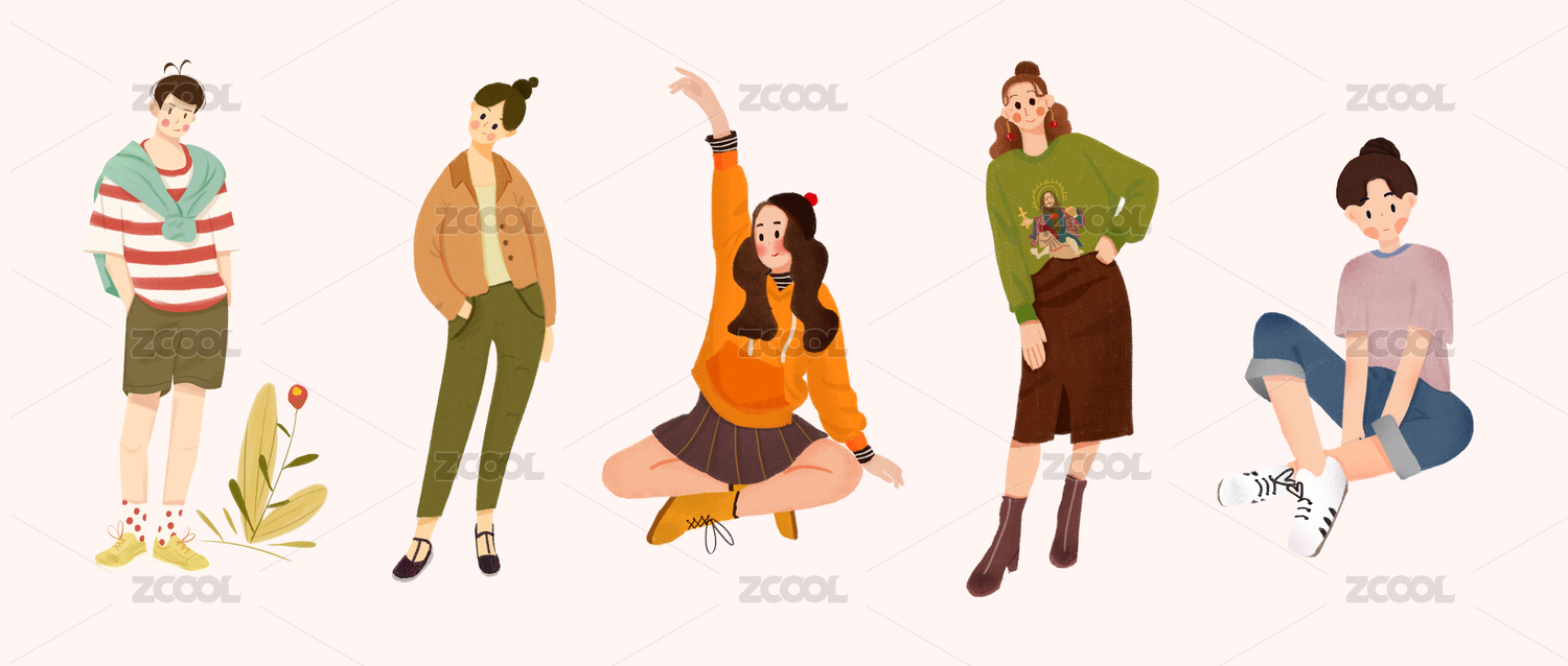 手繪穿搭背包帽子褲子時尚插畫線稿