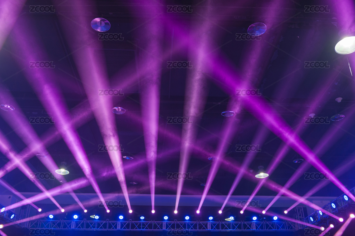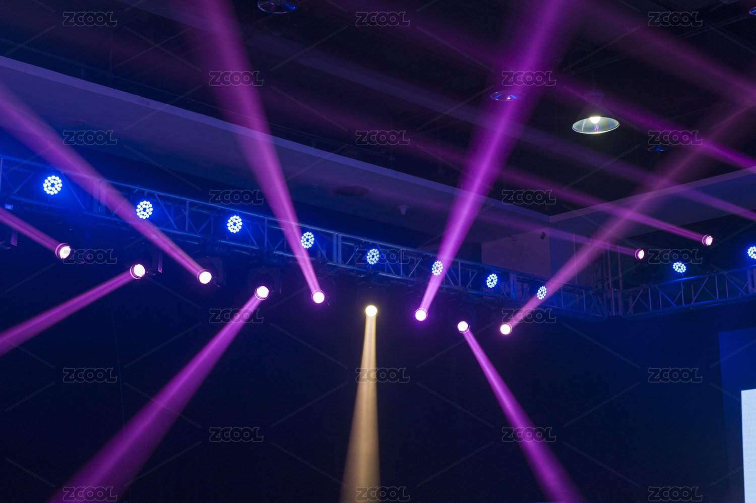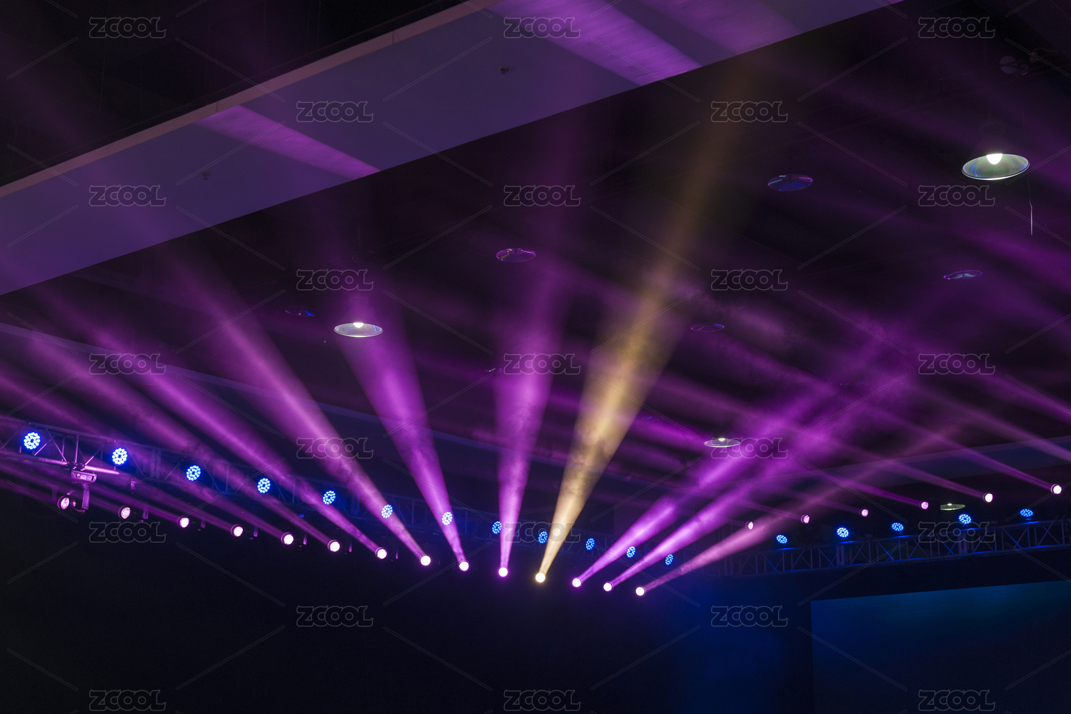 室內(nèi)藍(lán)色放射線條夢(mèng)幻舞臺(tái)燈光布景