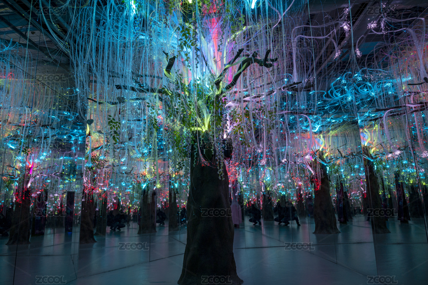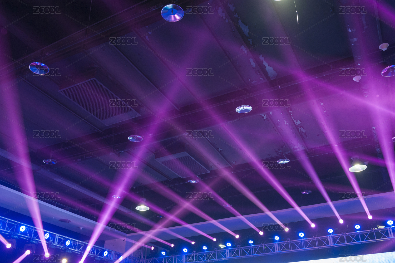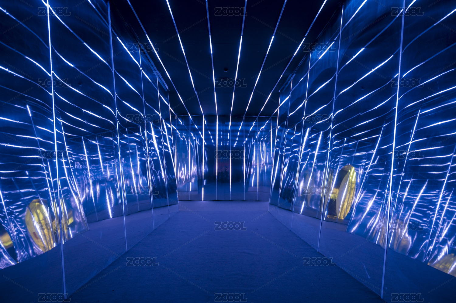室內(nèi)藍(lán)色放射線條夢(mèng)幻舞臺(tái)燈光布景