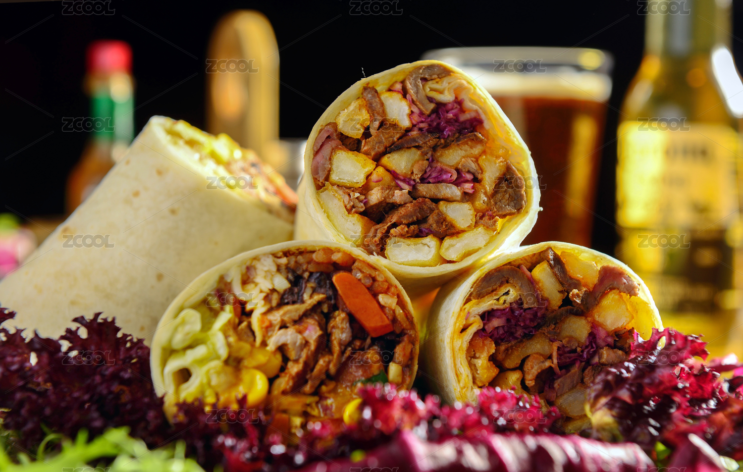 傳統(tǒng)墨西哥卷餅Taco塔可的特寫