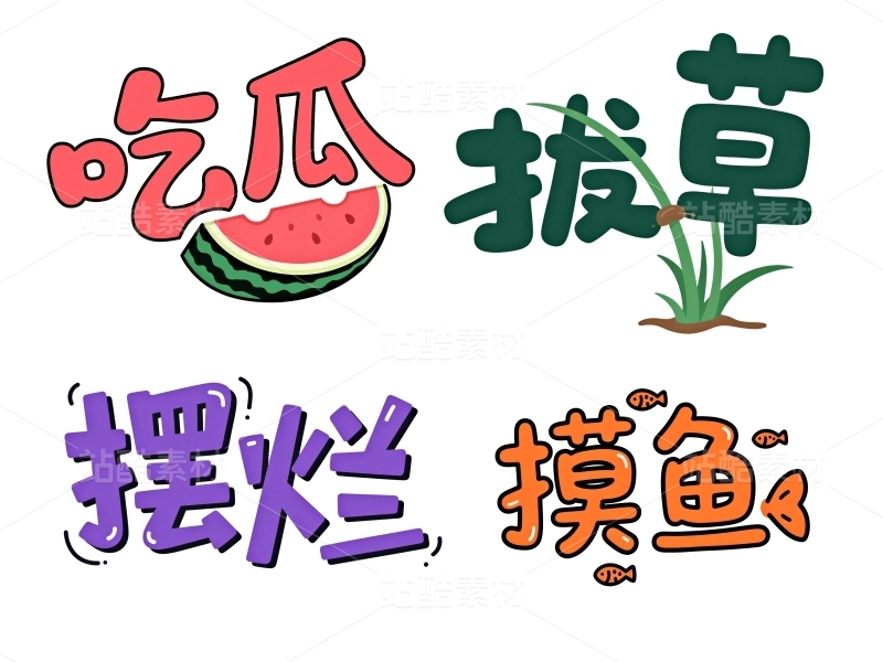 網(wǎng)絡(luò)流行詞 吃瓜 拔草 擺爛 摸魚 字體字形創(chuàng)意組合