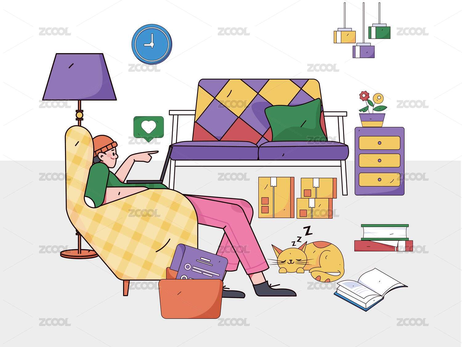 室內(nèi)隔離擺爛躺平的年輕人扁平矢量畫