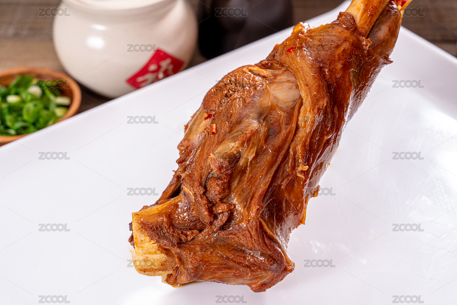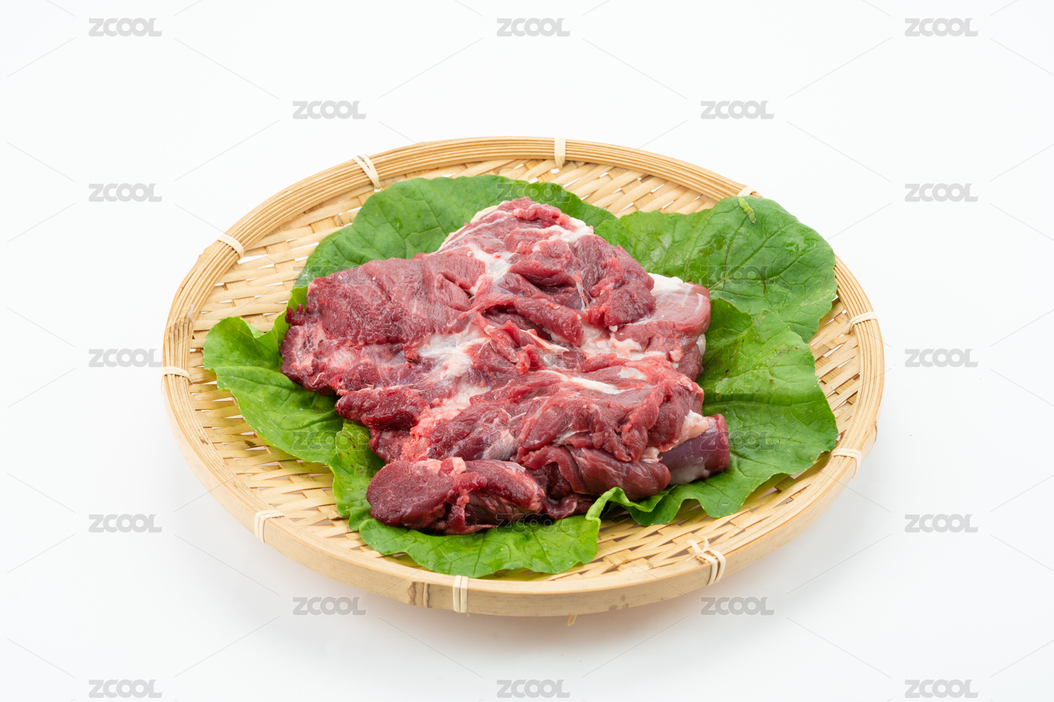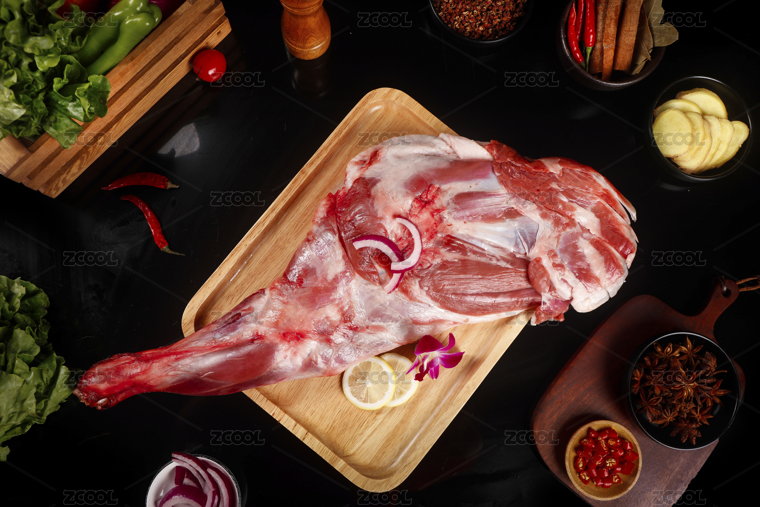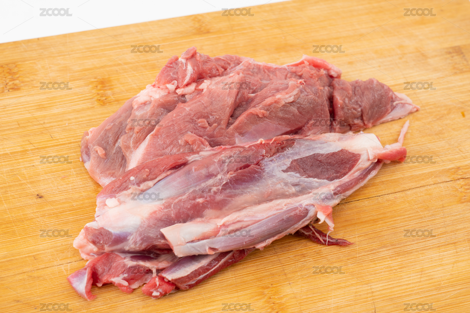 白盤里的白切羊肉片羊腿肉片蘸辣椒油碟
