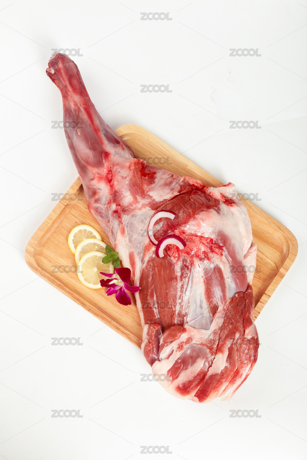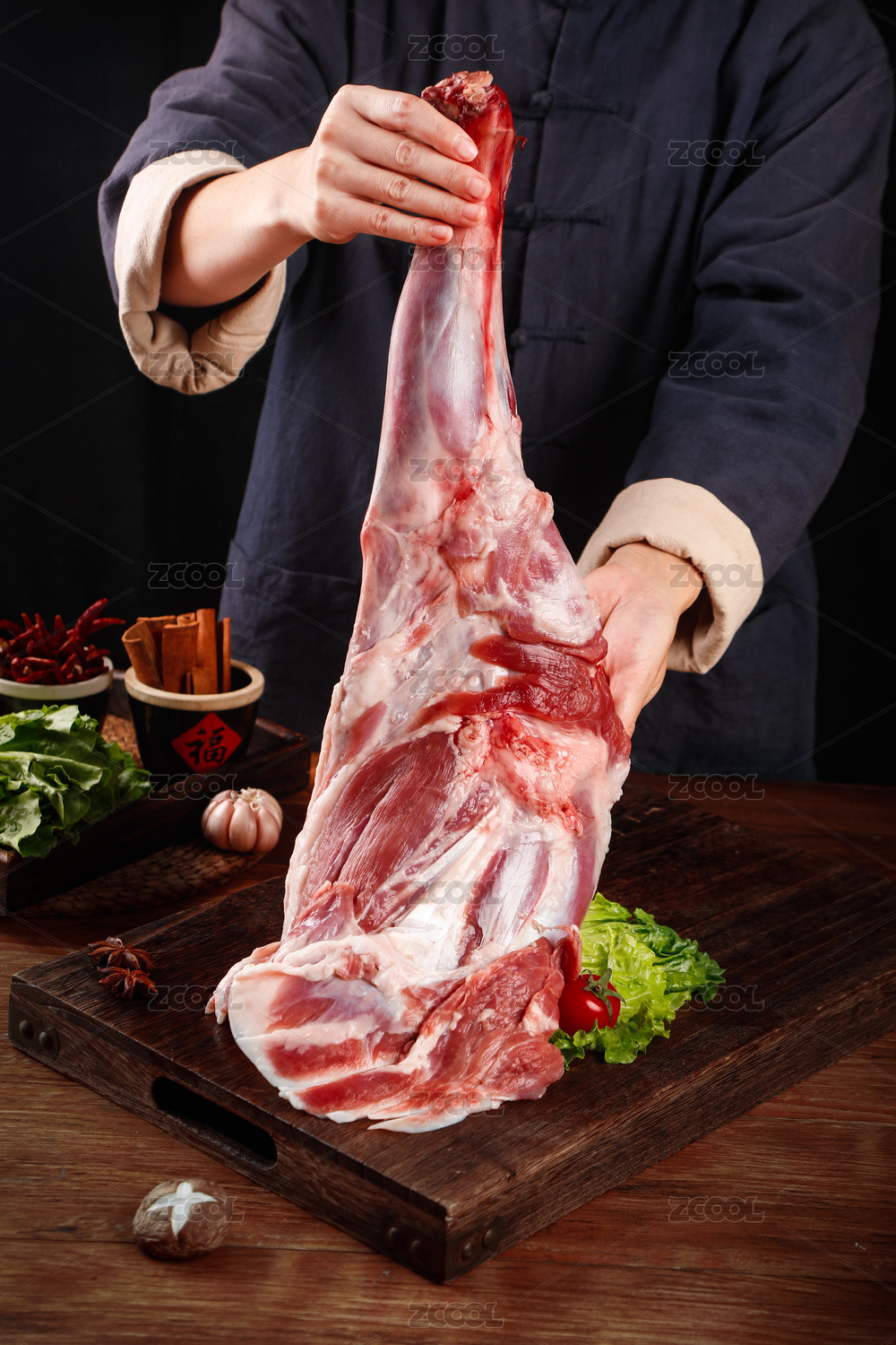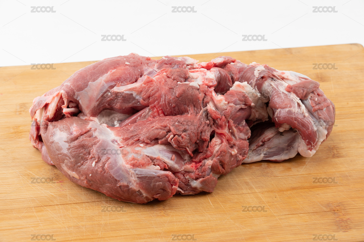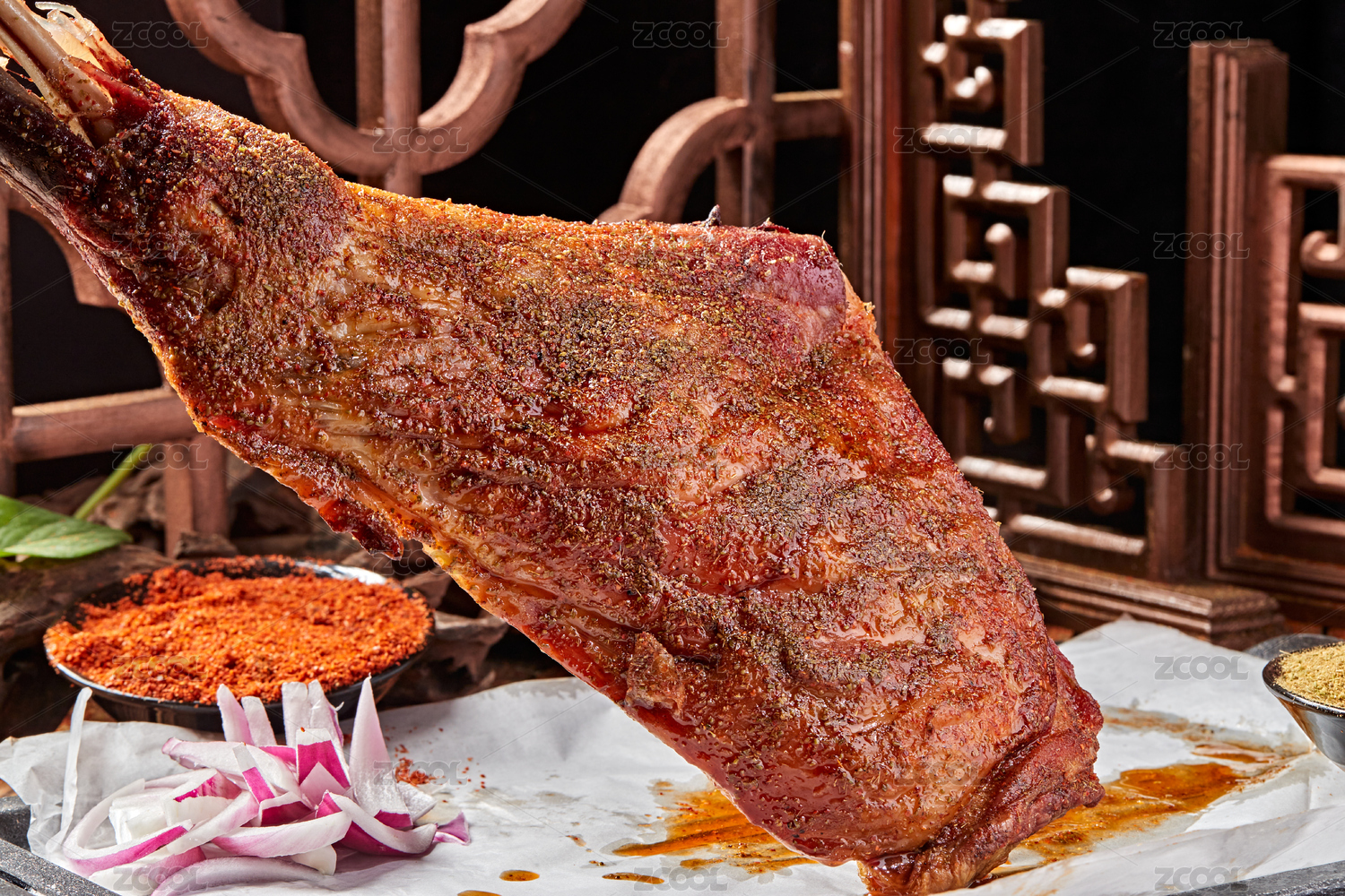 白盤里的白切羊肉片羊腿肉片蘸辣椒油碟