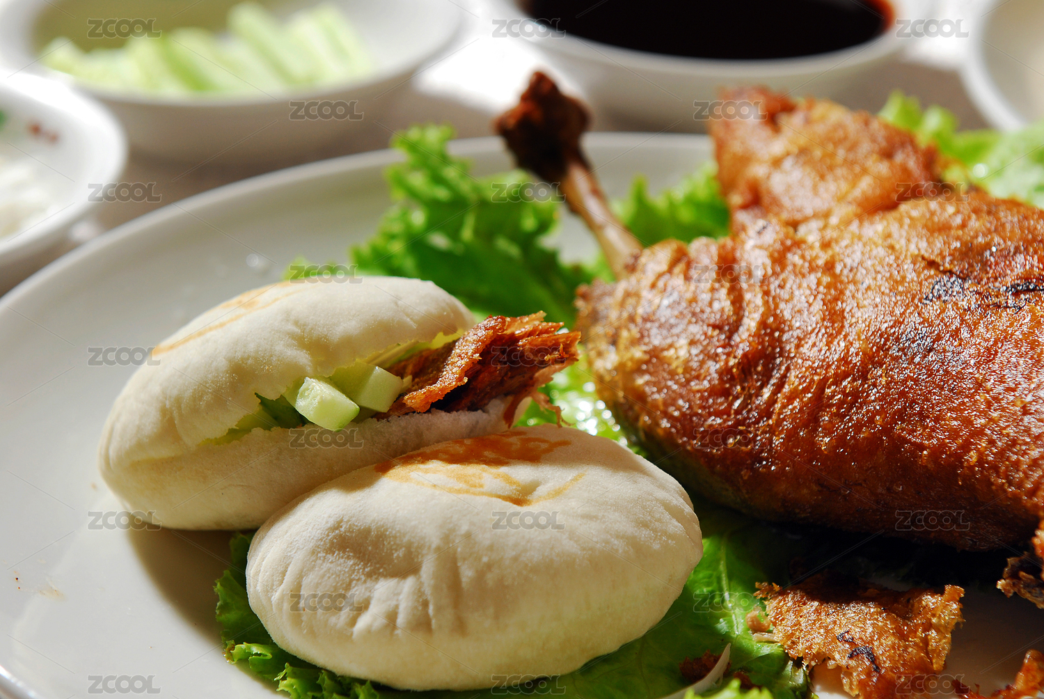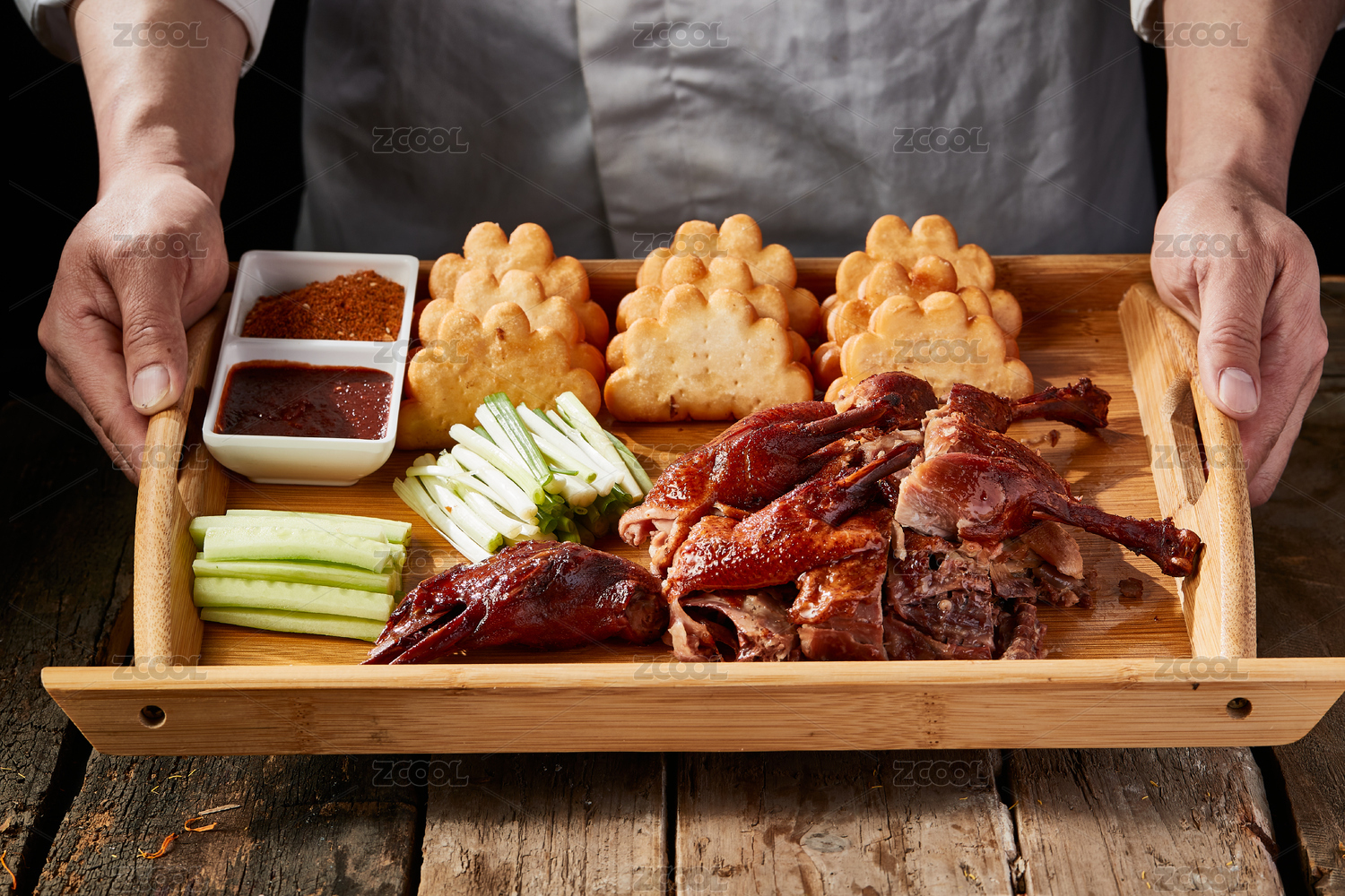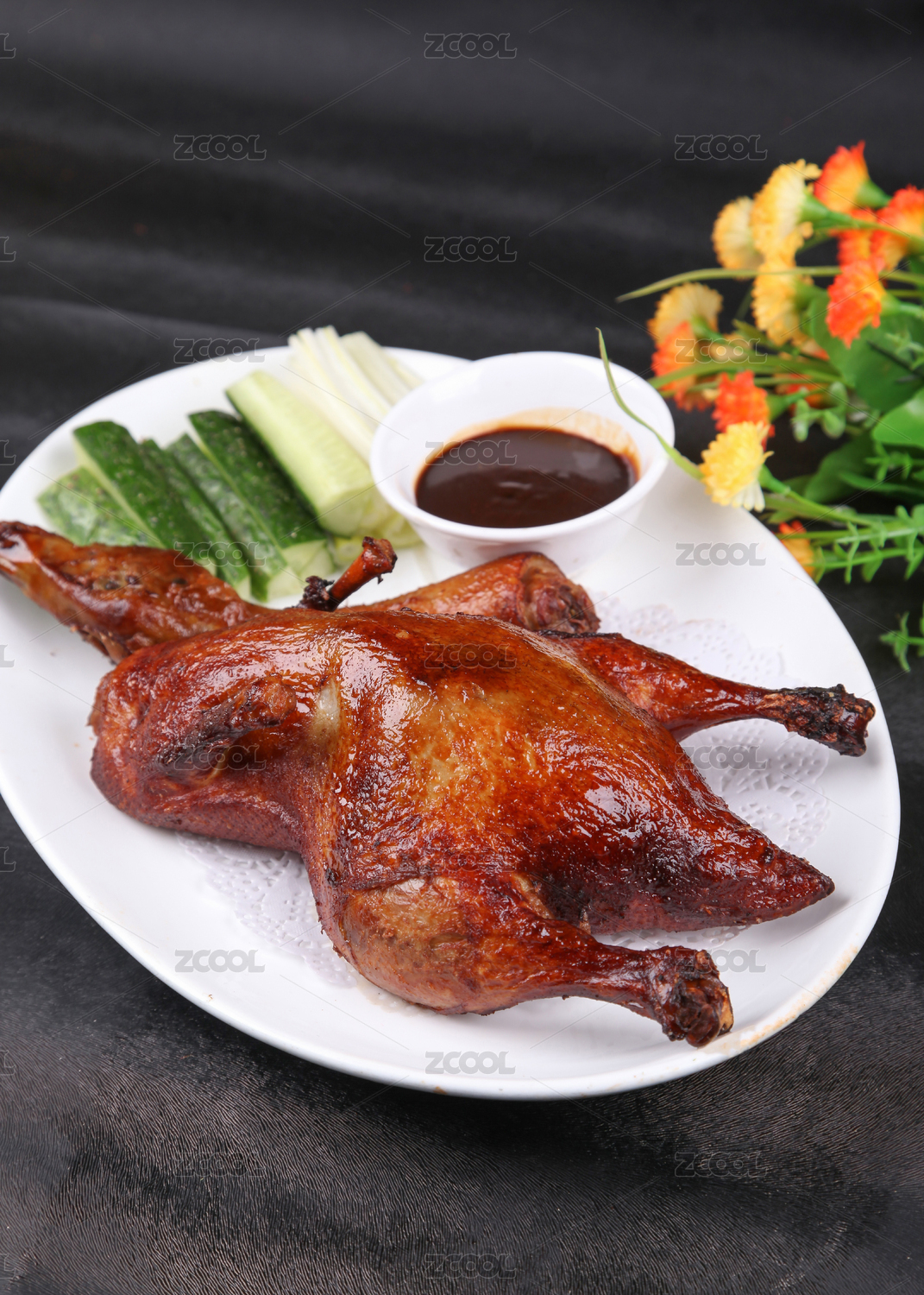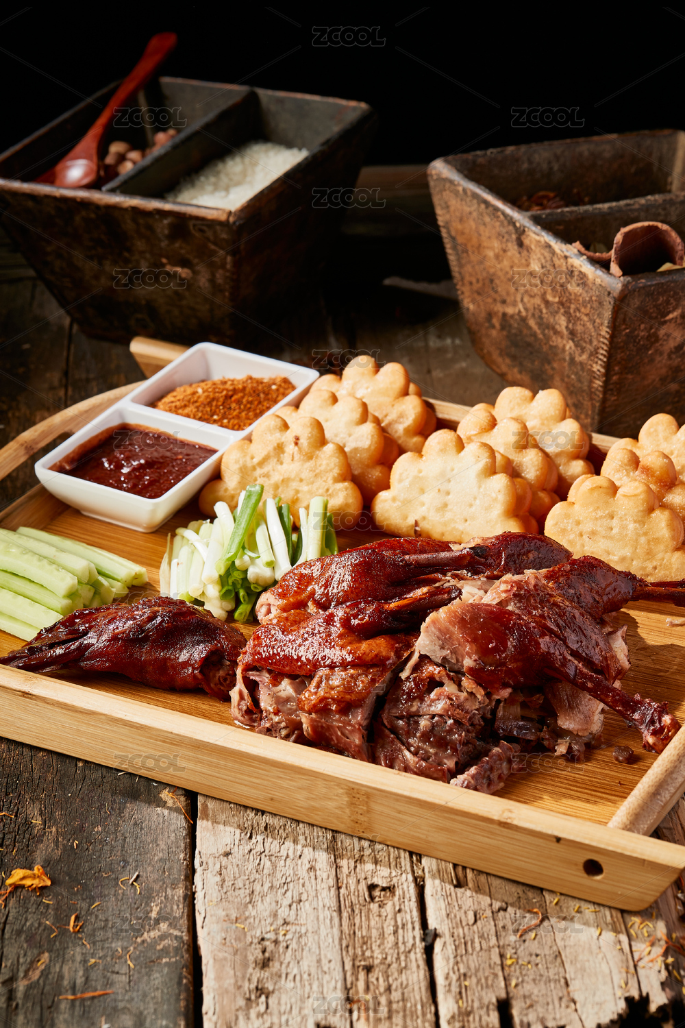 燒烤網(wǎng)上放著一盤切塊的香酥鴨