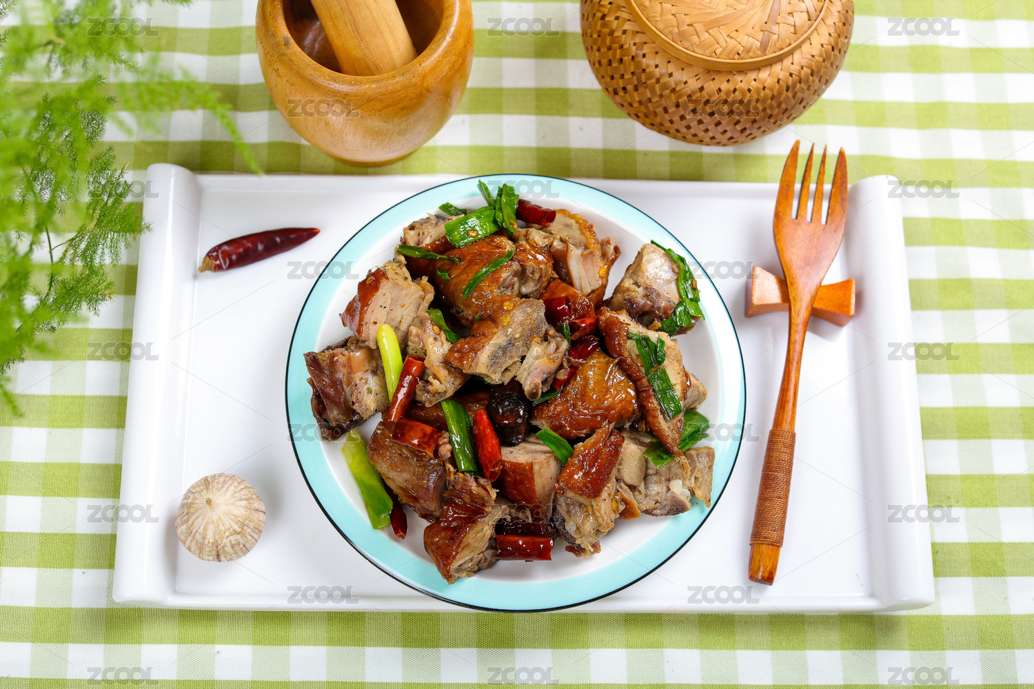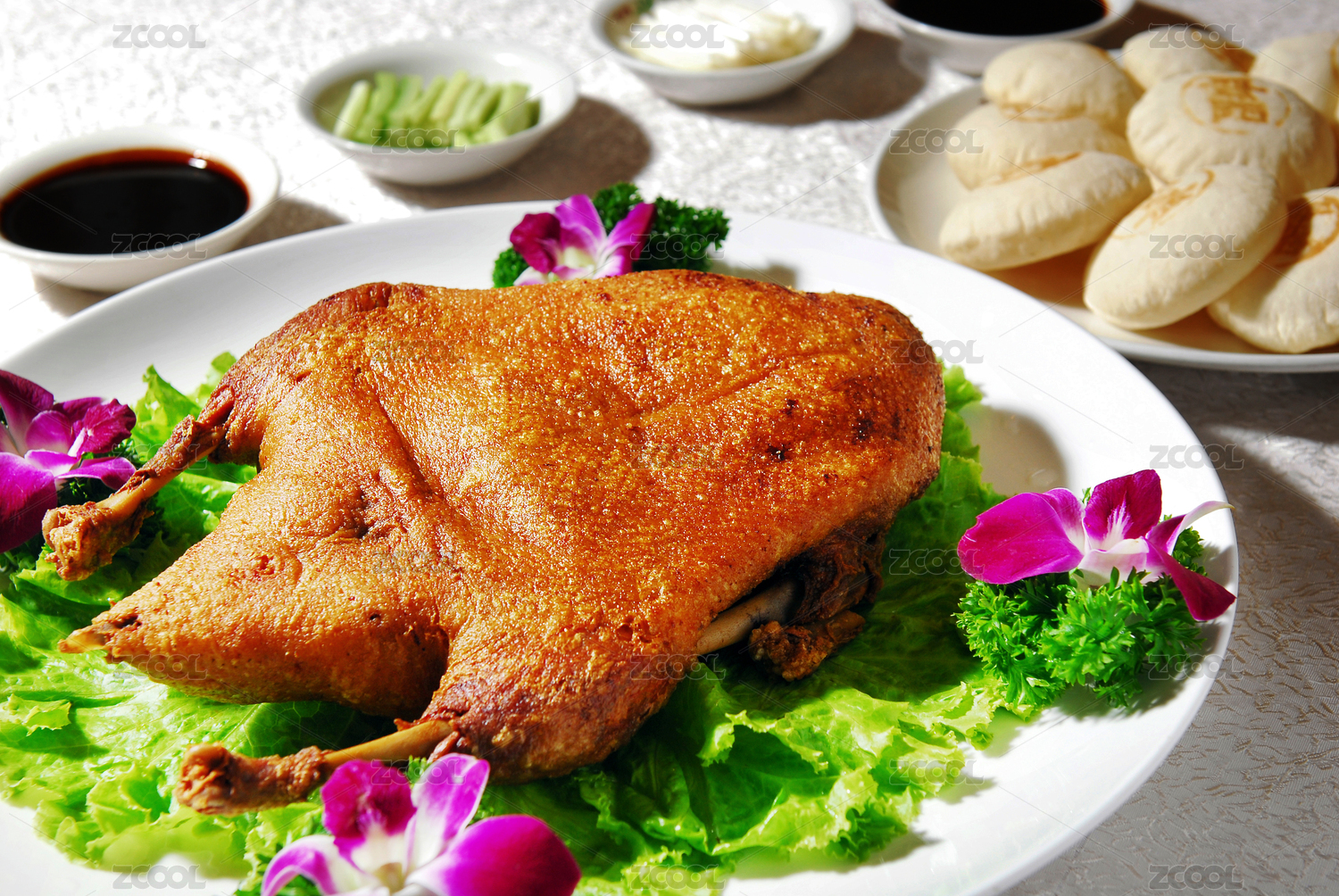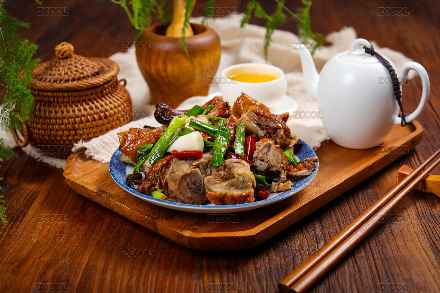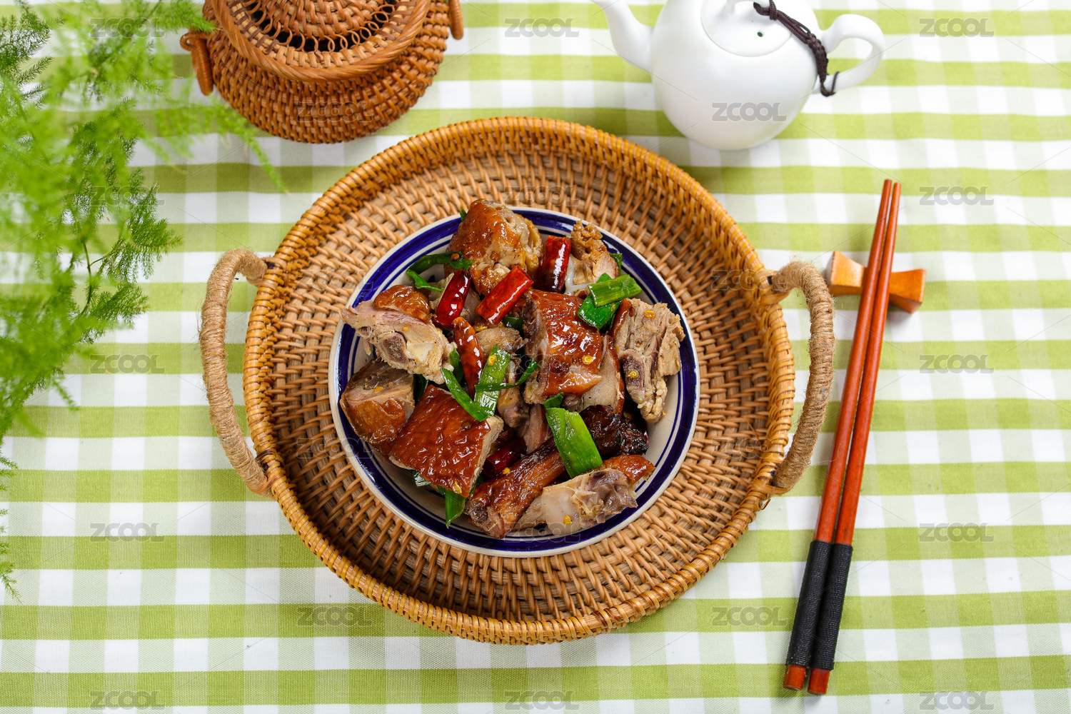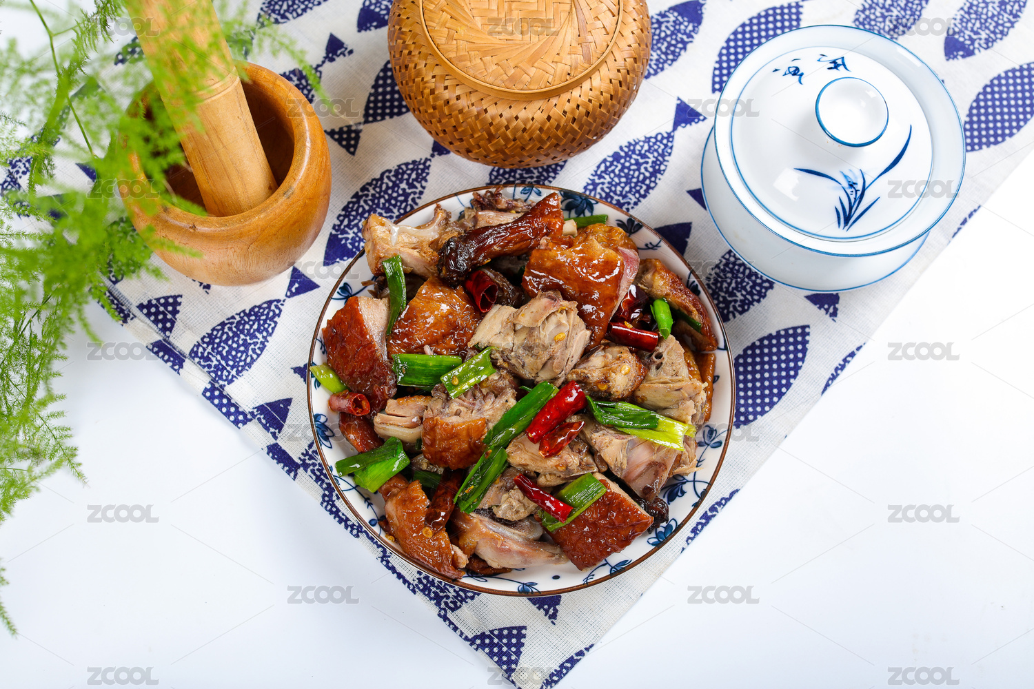 燒烤網(wǎng)上放著一盤切塊的香酥鴨