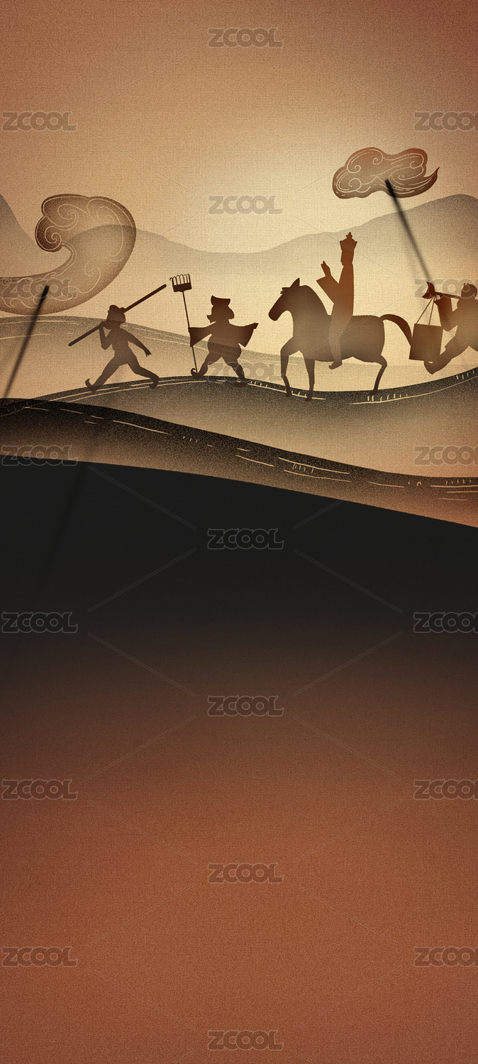 扁平剪影皮影戲手繪插畫