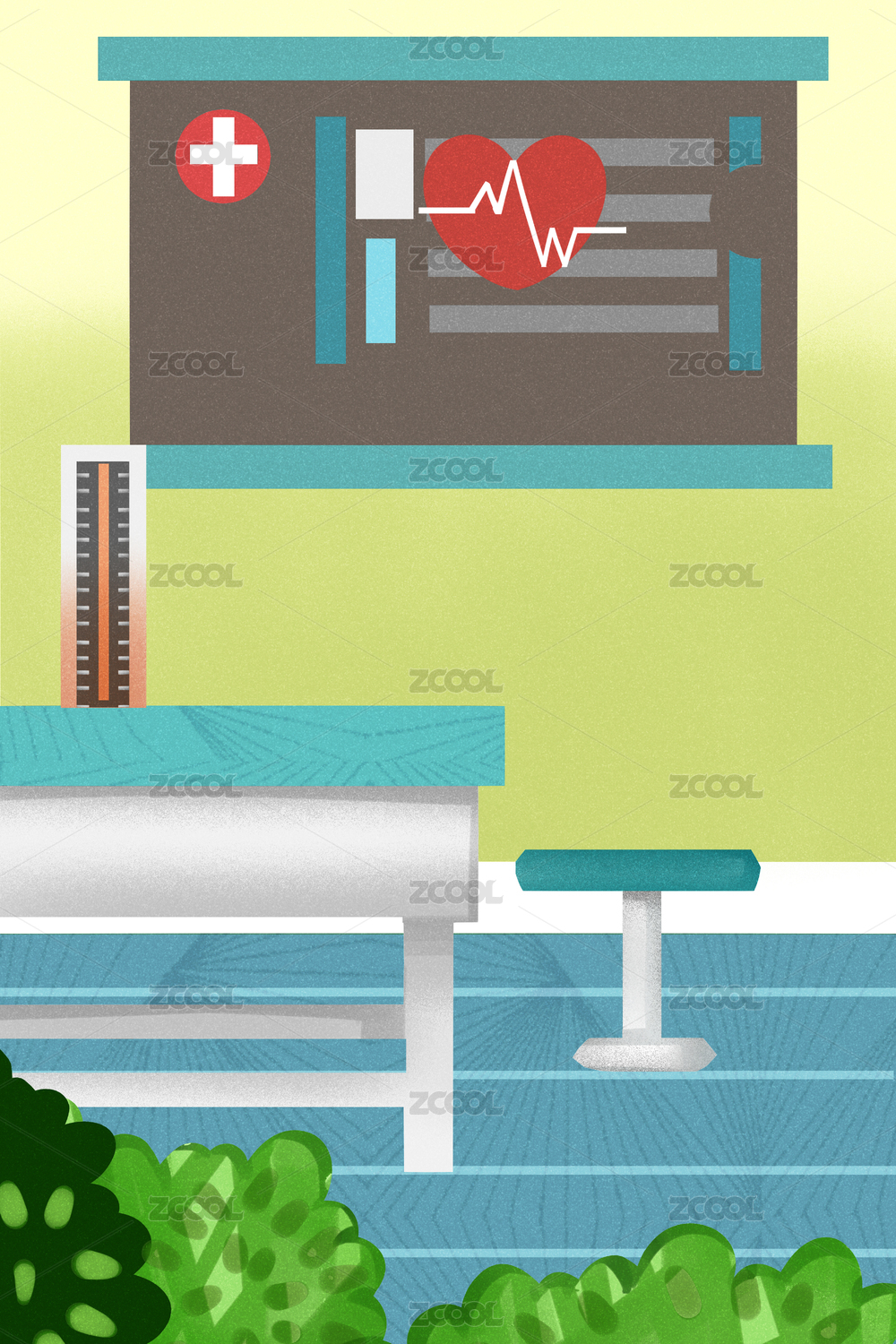 扁平風(fēng)格醫(yī)院心腦血管內(nèi)科診療室插畫背景