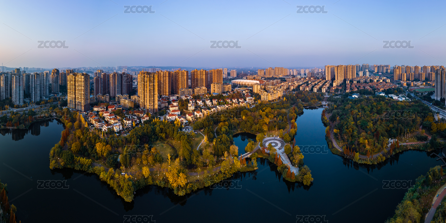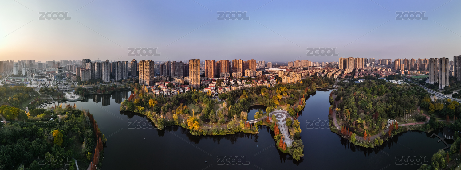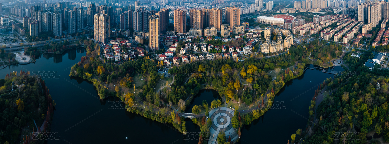 航拍南國燈城自貢市南湖生態(tài)公園全景