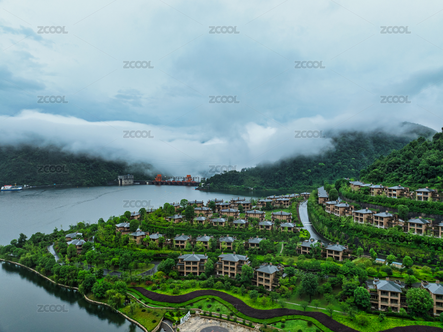 建德云霧繚繞的湖畔別墅度假村