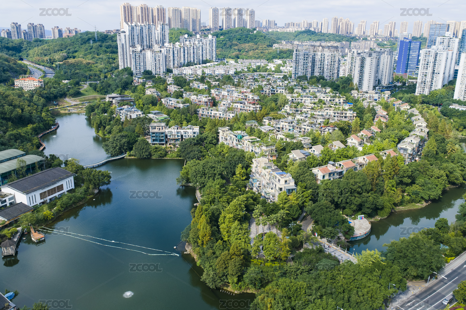 重慶天湖公園金科天湖美鎮(zhèn)湖畔別墅航拍