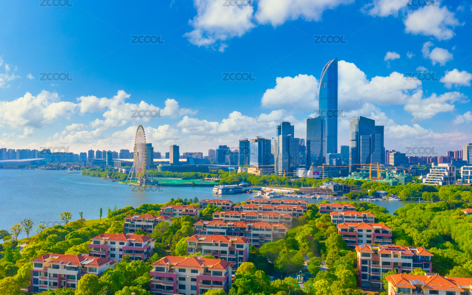 中國江蘇省蘇州市金雞湖畔的別墅群