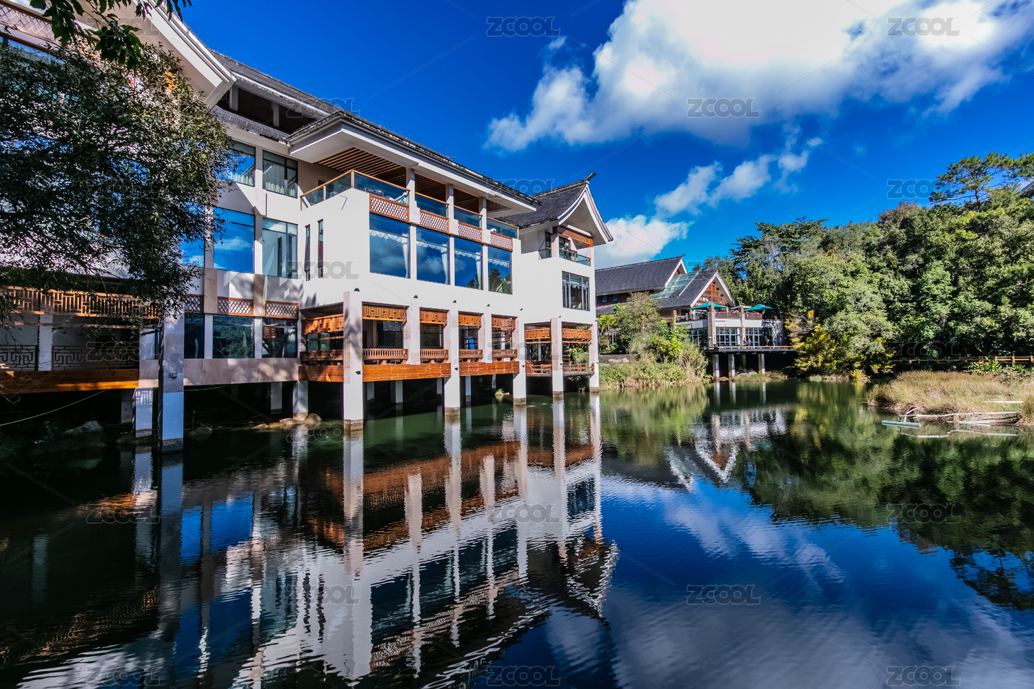 中國云南省普洱市梅子湖畔別墅山莊園林建筑