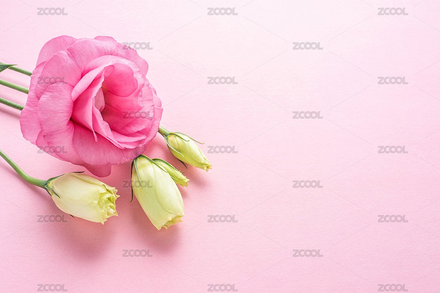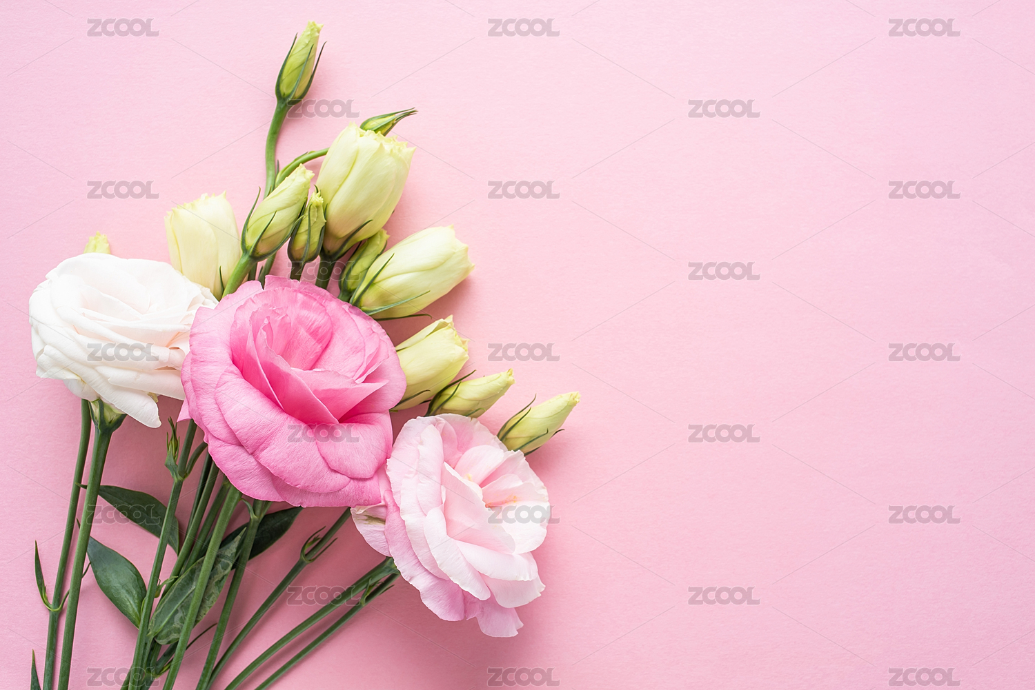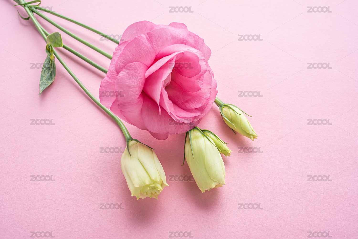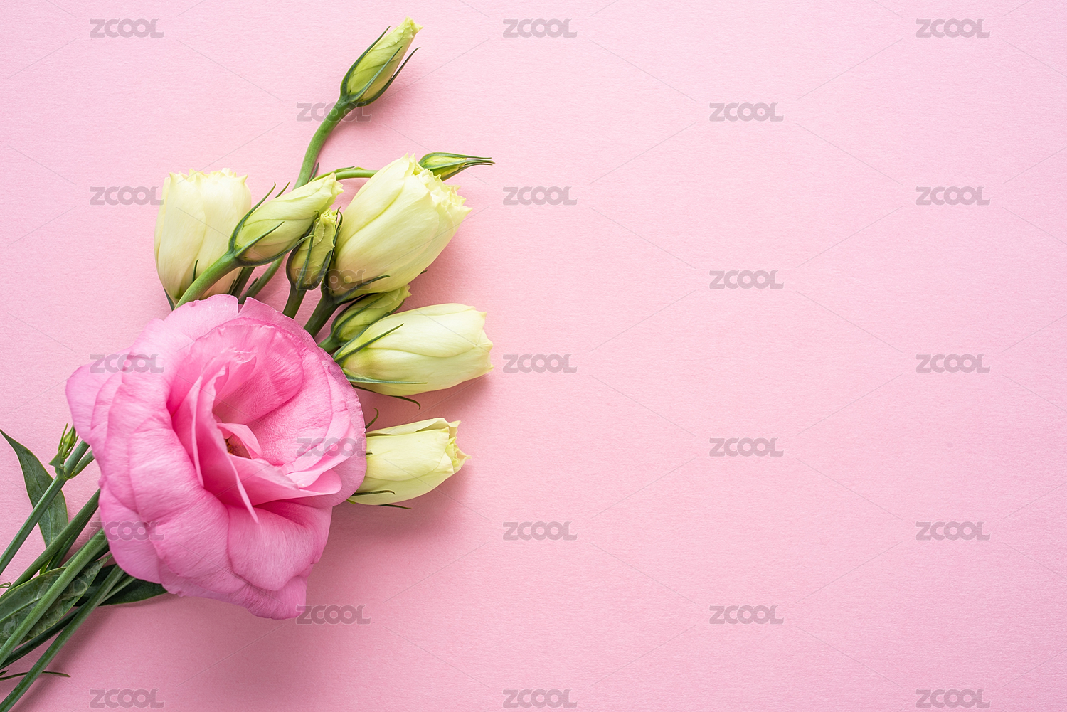 一束美麗的洋桔梗花在粉紅色背景上