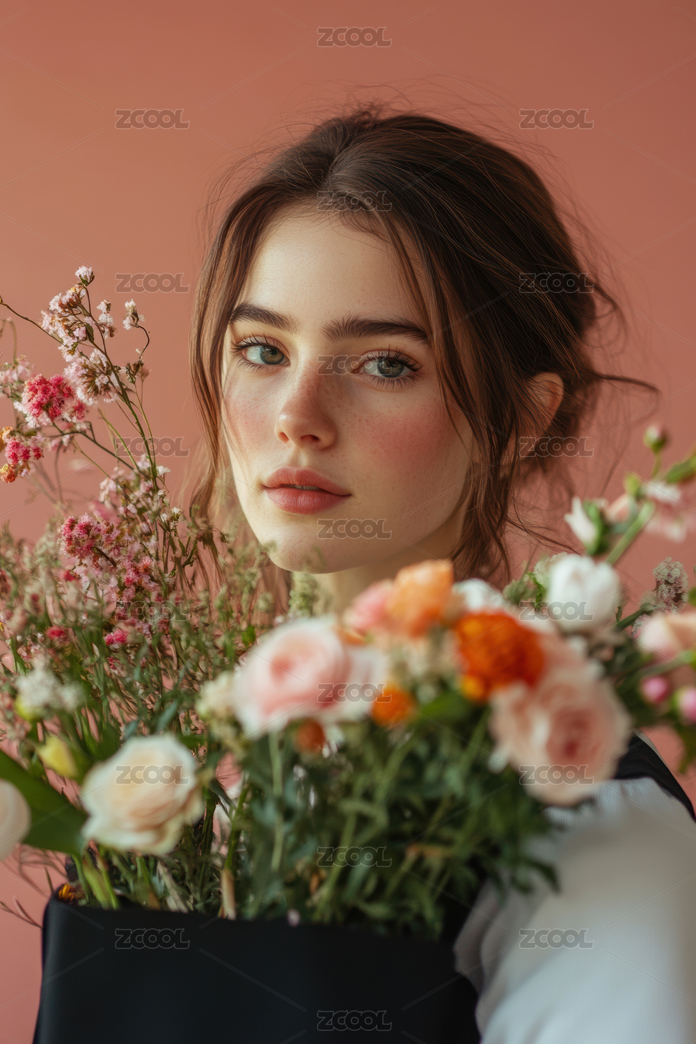 花束中的美麗少女