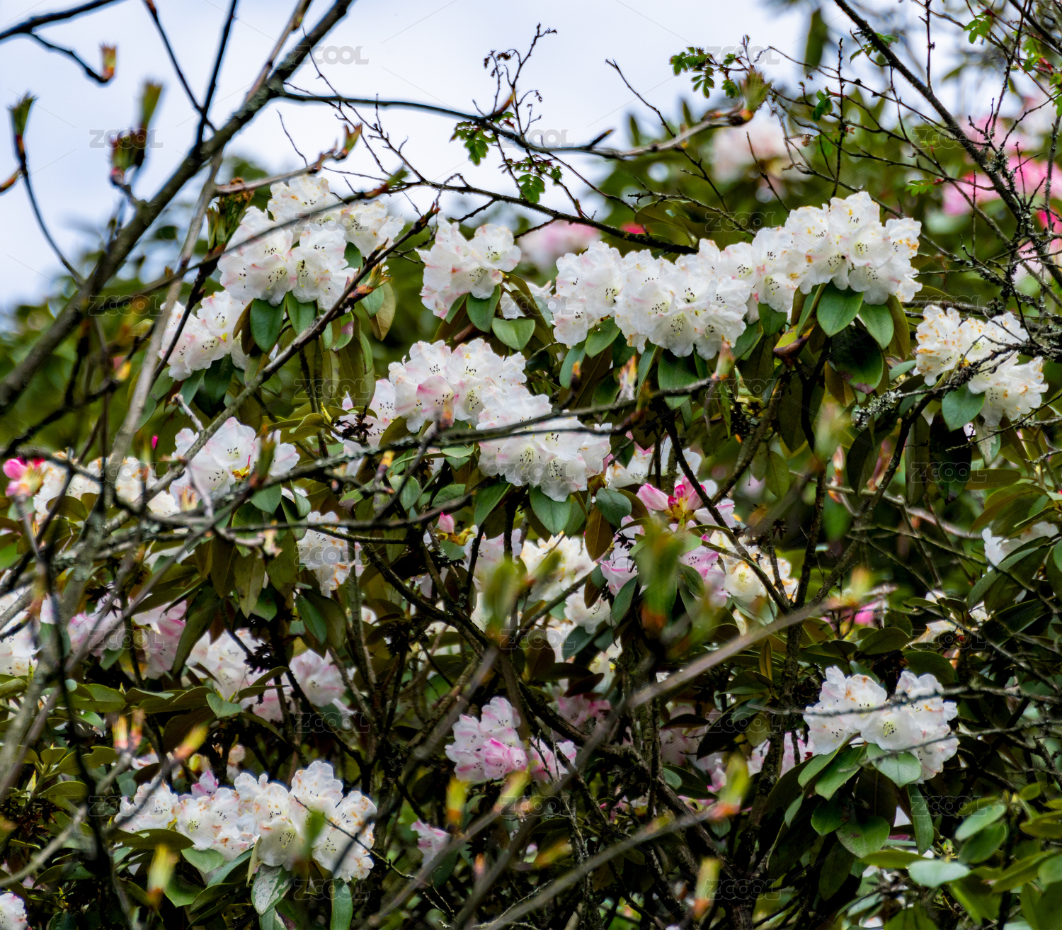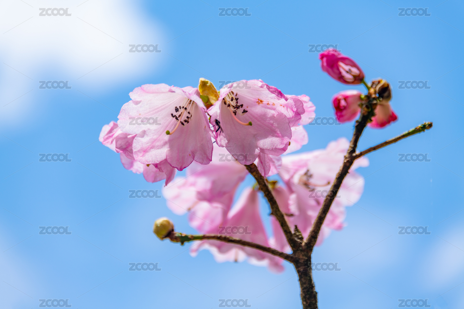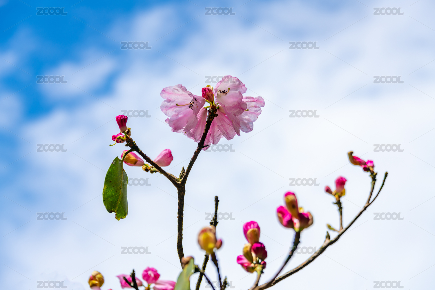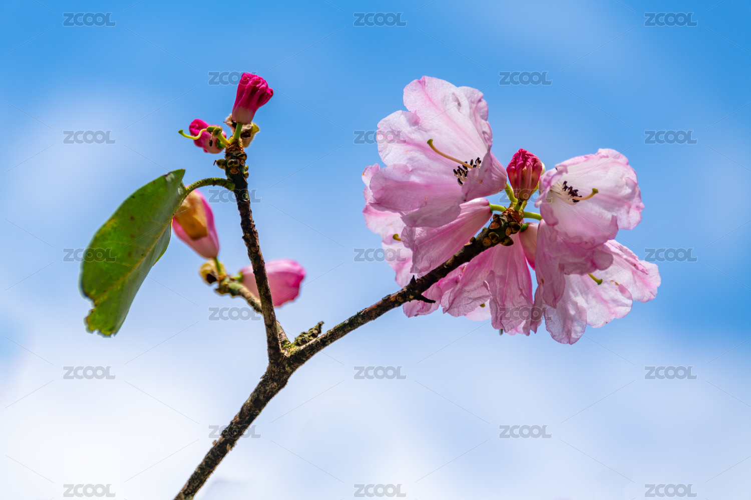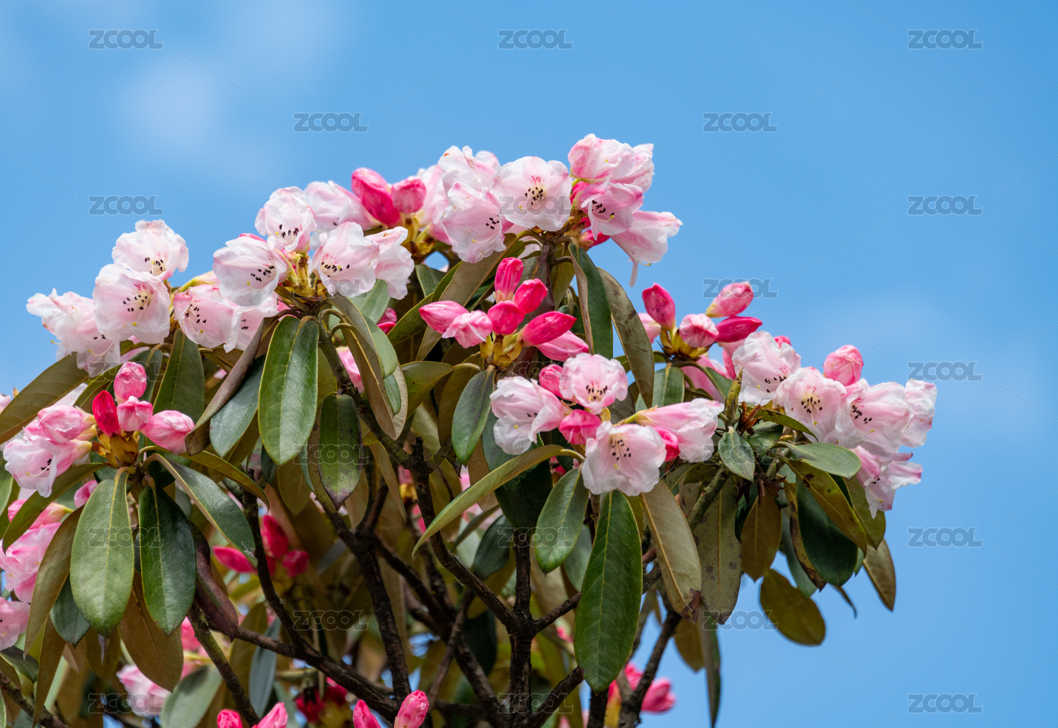 藍(lán)色天空背景下美麗的杜鵑花