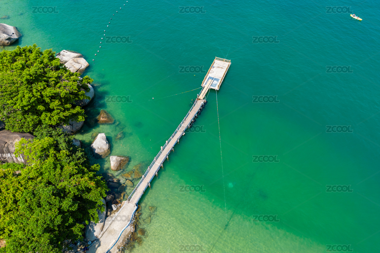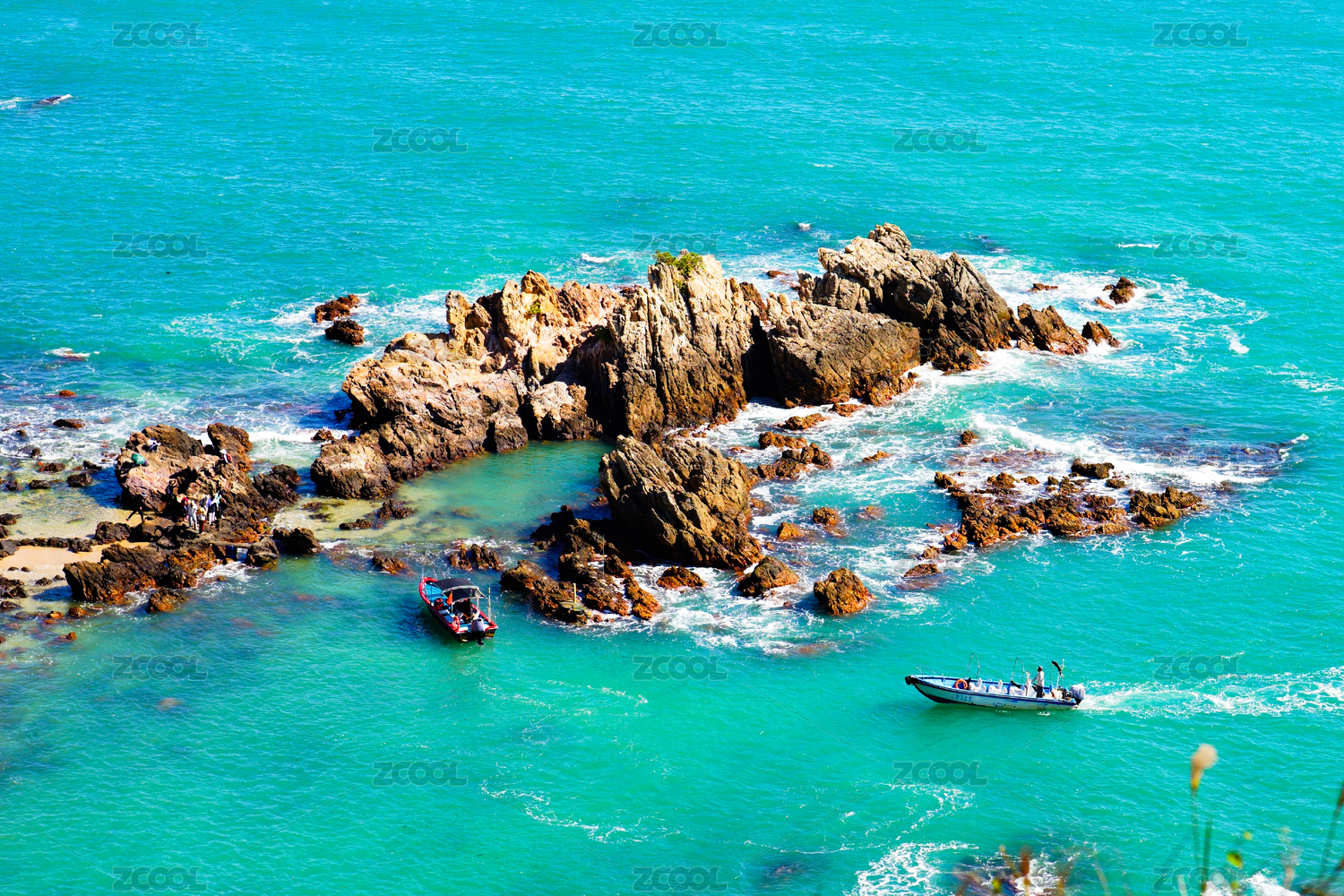 中國(guó)深圳大鵬海岸線礁石和漁船