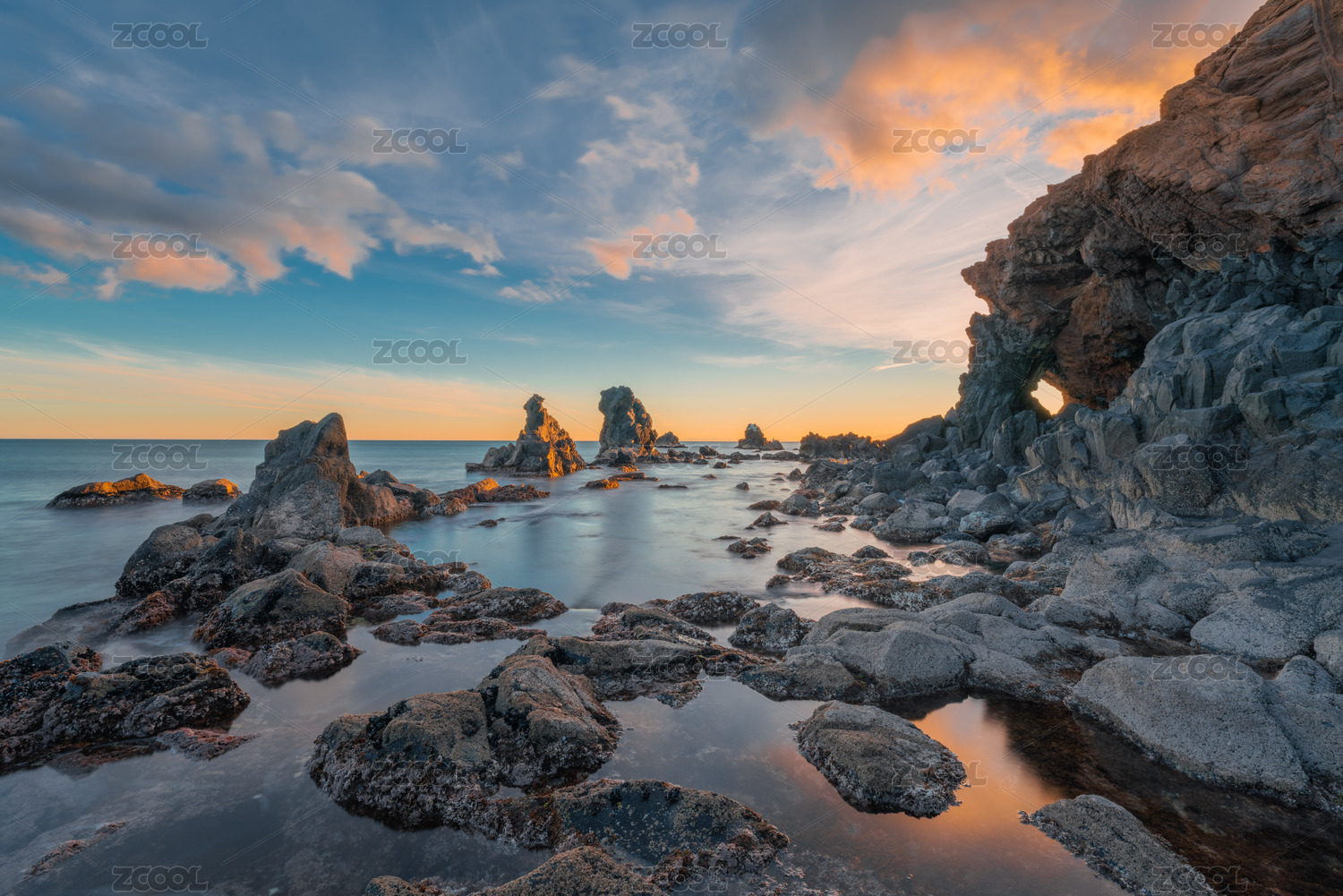 海岸線礁石和黃昏自然風(fēng)景