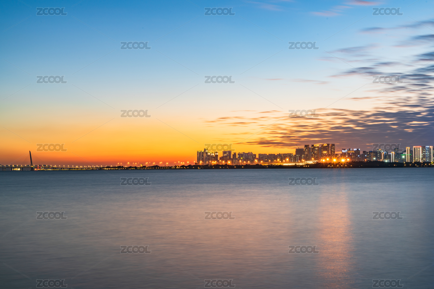 深圳灣暮光中的海岸線