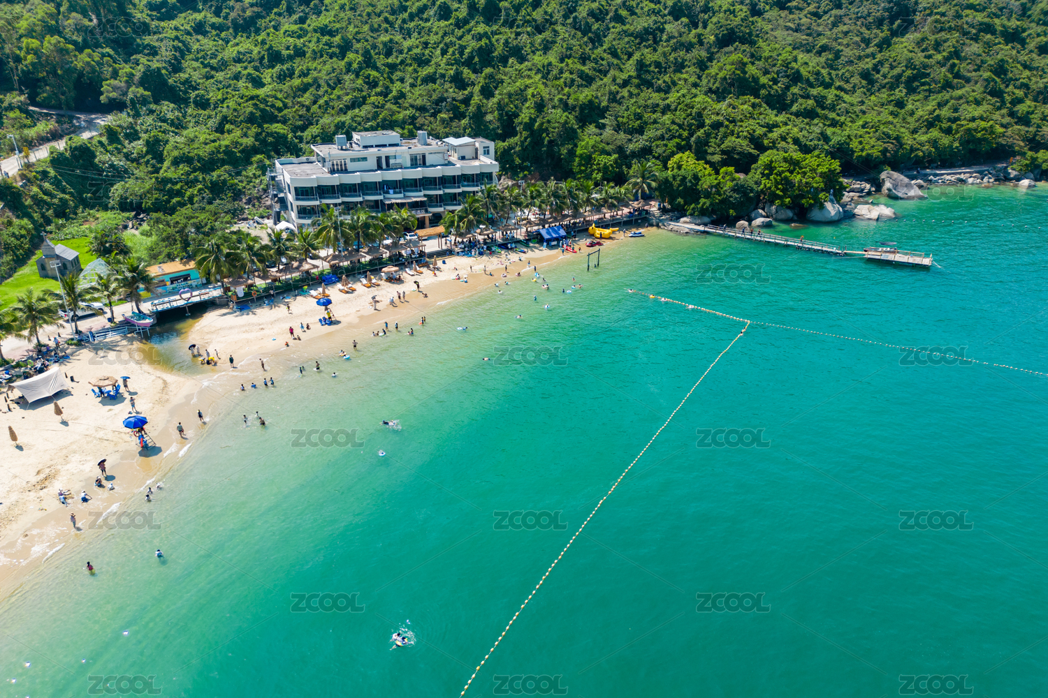 航拍海南萬寧山欽灣海岸線