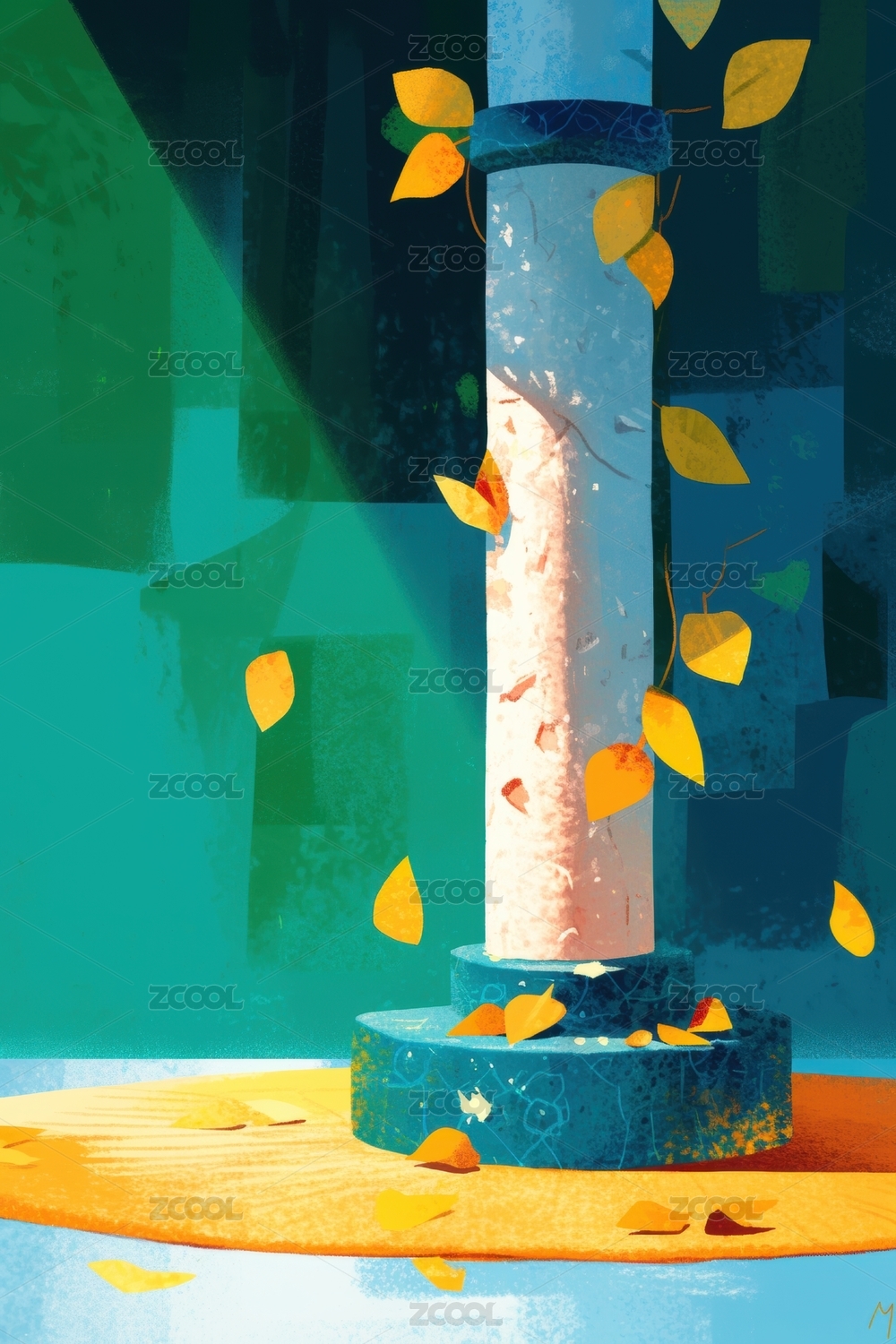秋日柱影背景