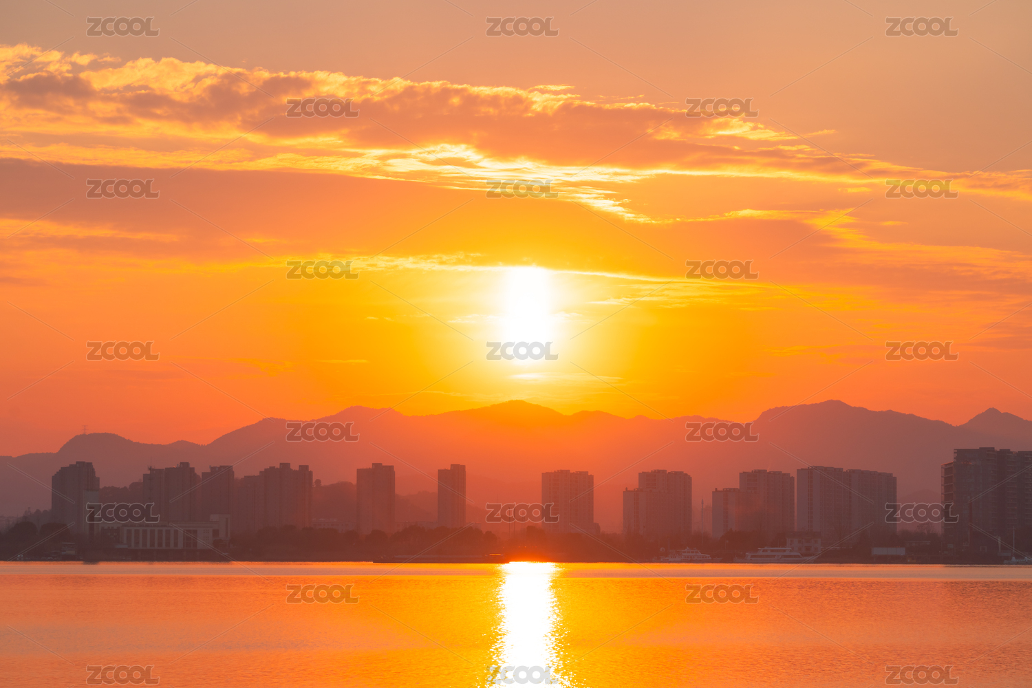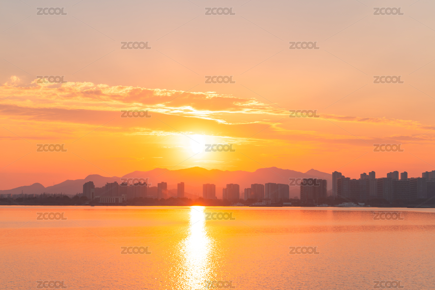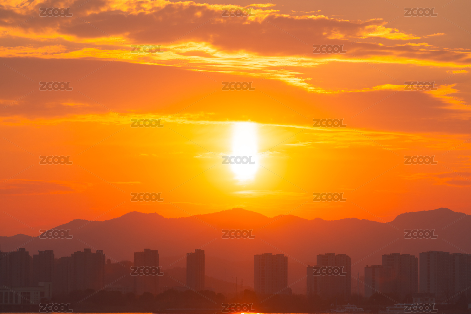 城市天邊太陽下山天空落日日柱