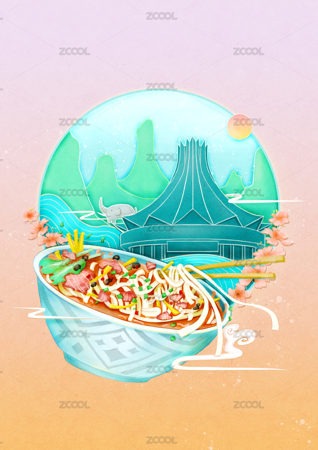 手繪中國風(fēng)柳州螺螄粉