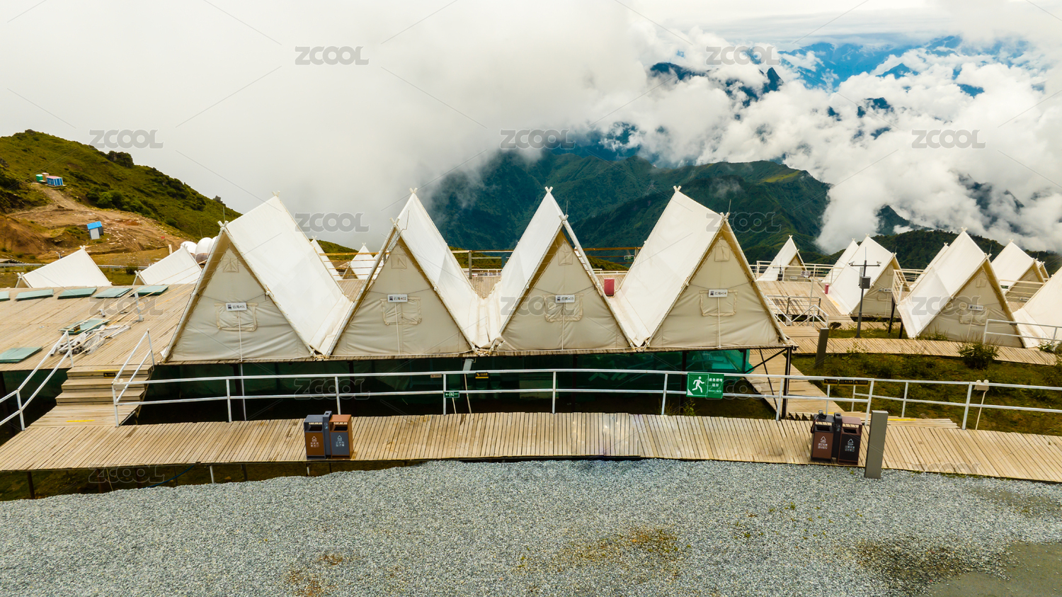 中國(guó)牛背山頂?shù)男强辗?、帳篷與自然風(fēng)光