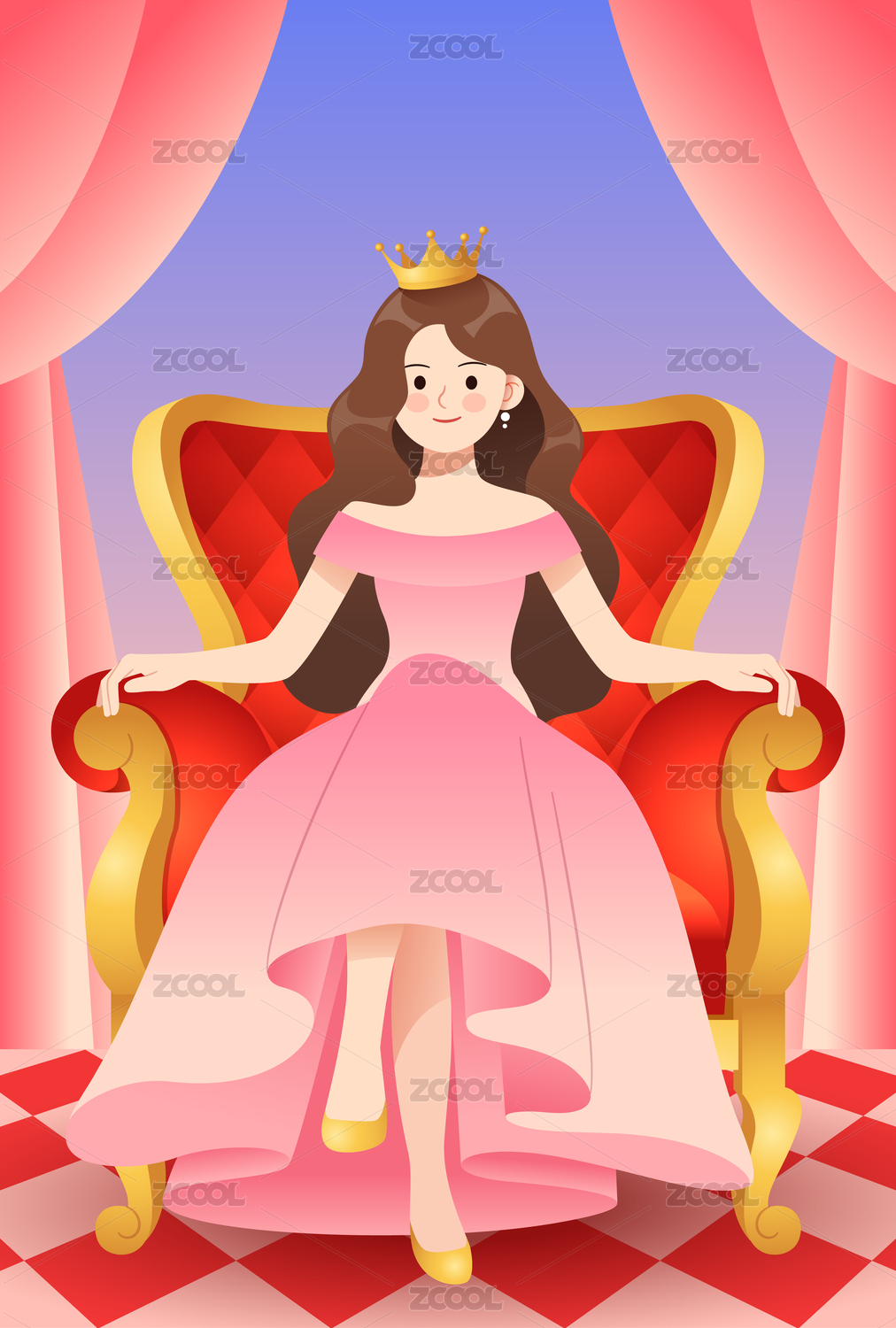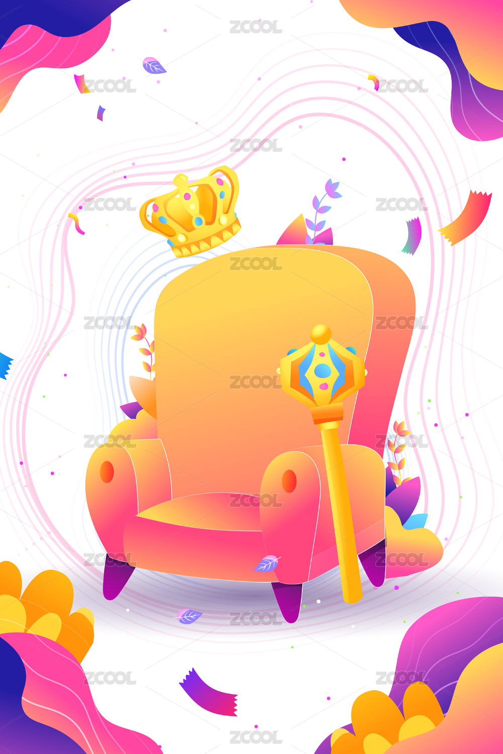 卡通王座皇冠促銷(xiāo)活動(dòng)漸變背景矢量插畫(huà)
