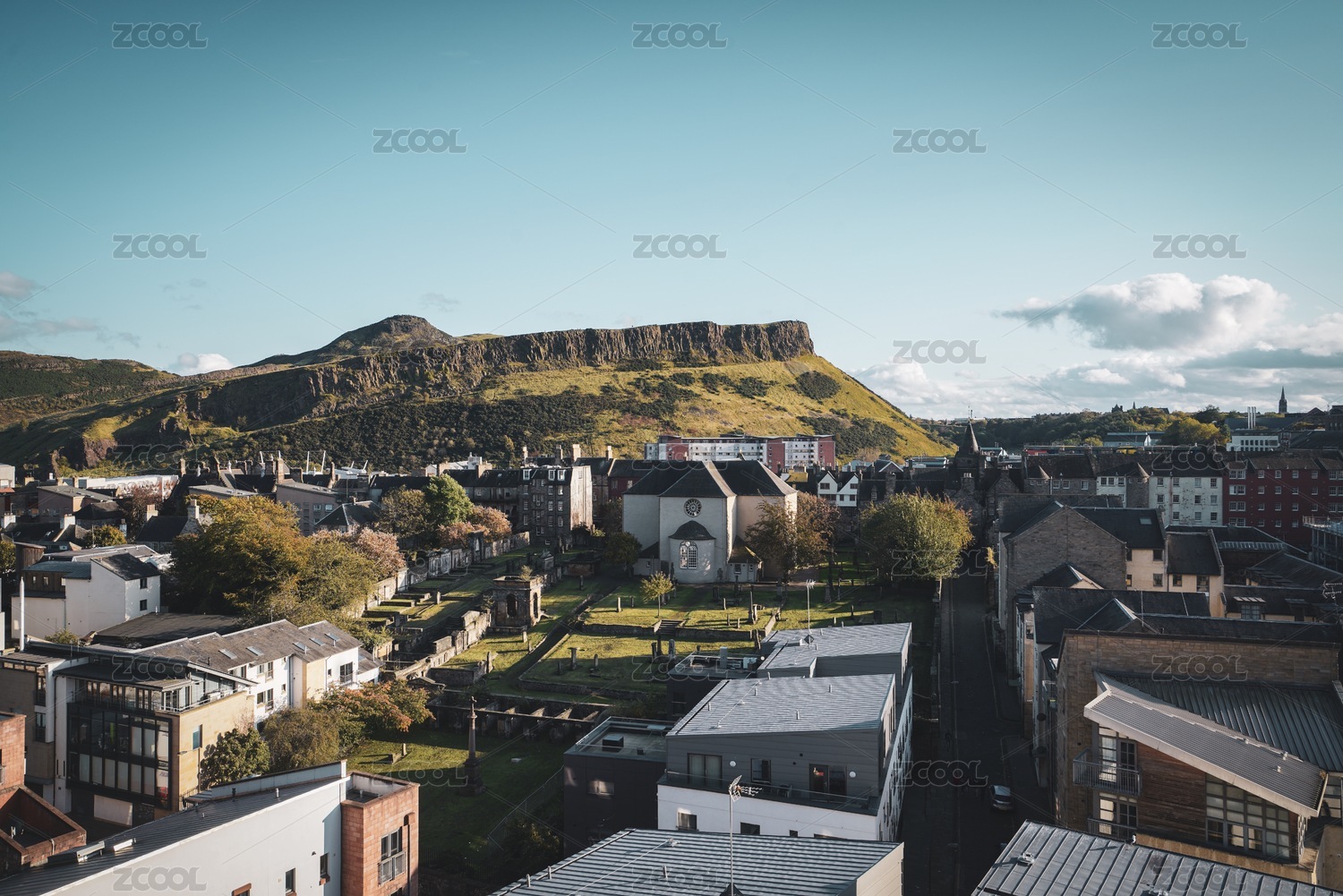 英國(guó)蘇格蘭首府愛(ài)丁堡遠(yuǎn)眺亞瑟王座山