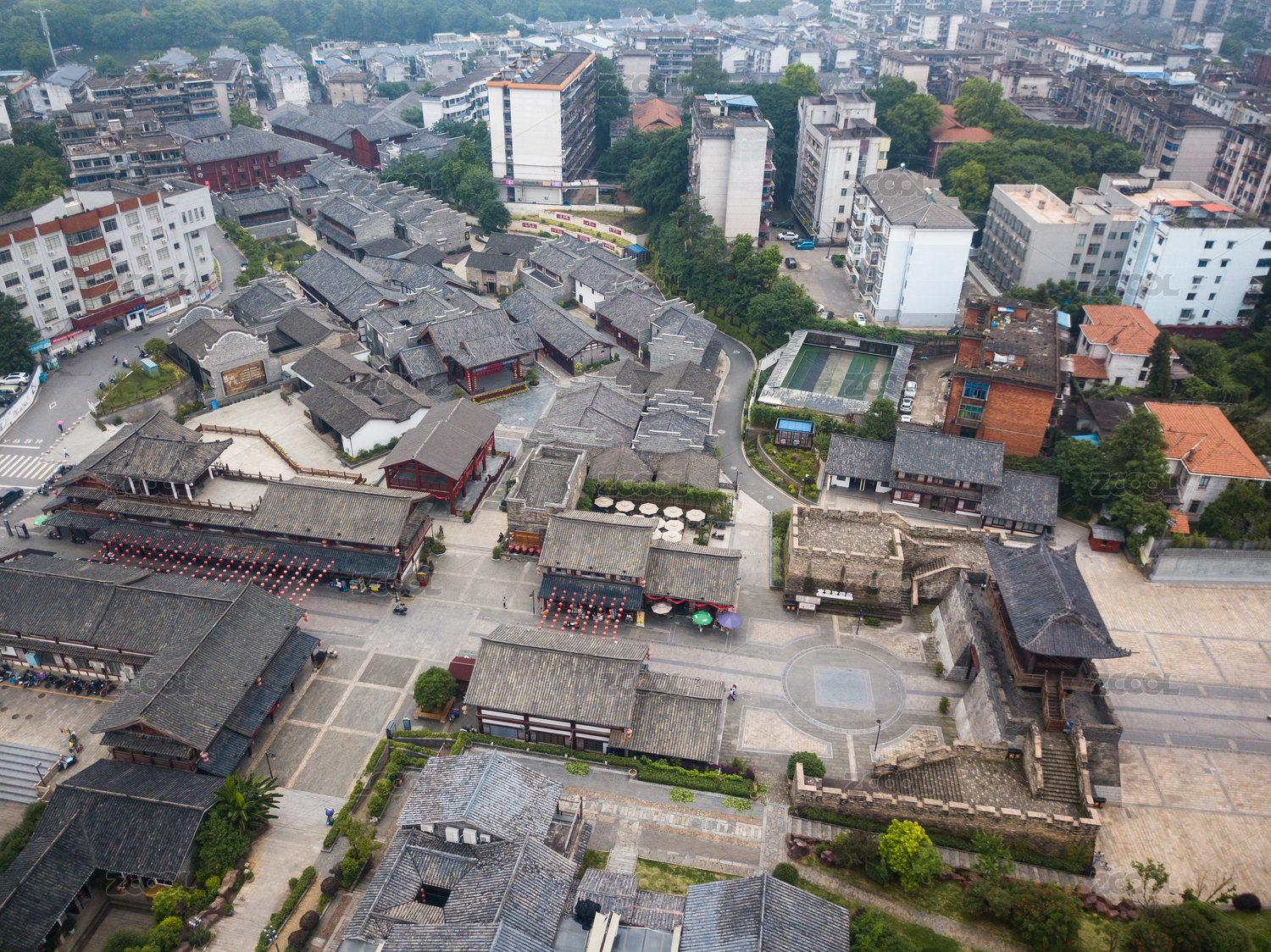 航拍福建福州上下杭?xì)v史文化街區(qū)古建筑群落