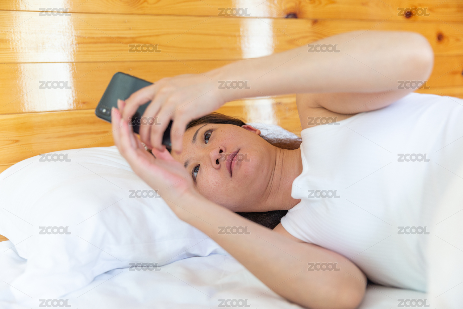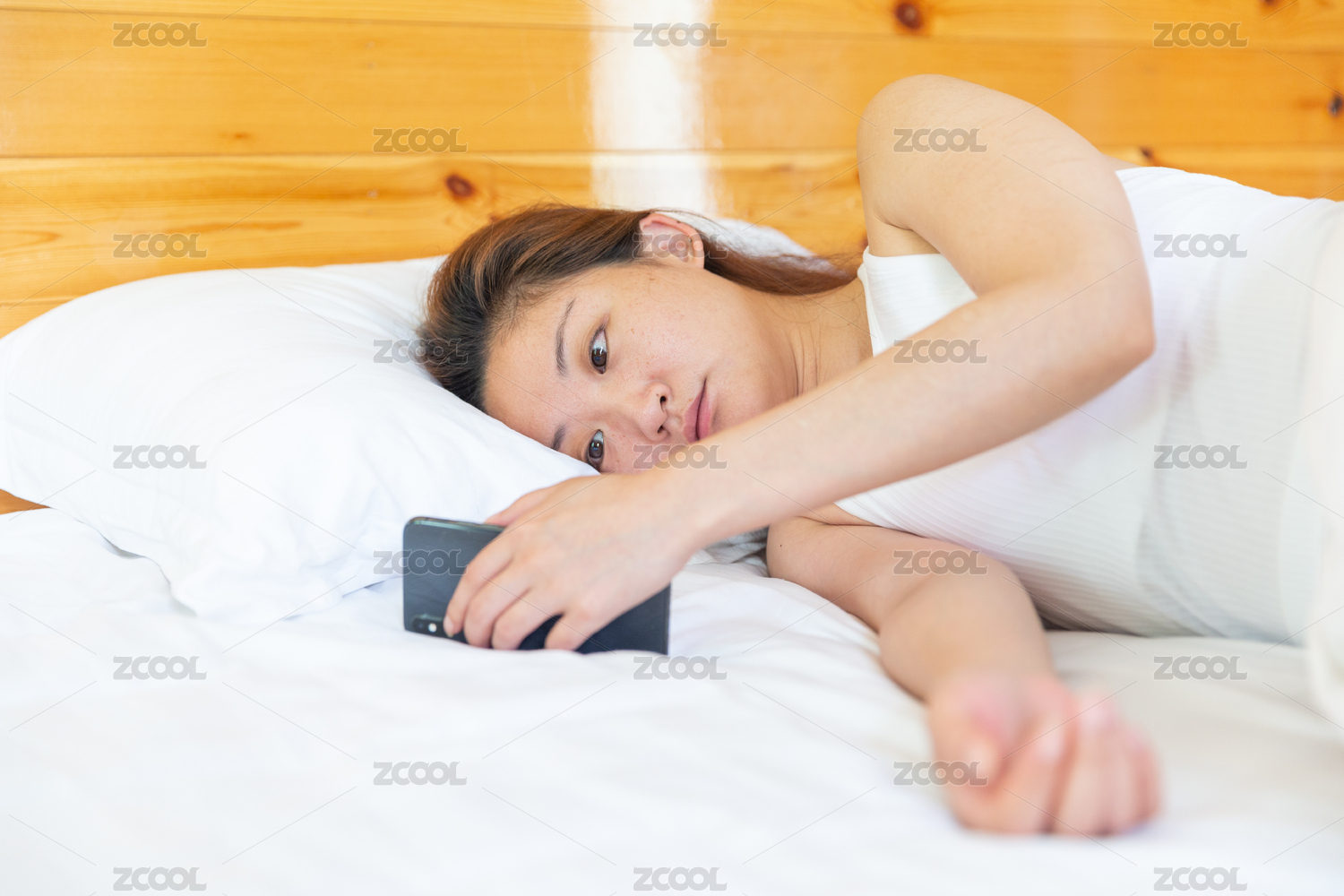躺在床上玩手機(jī)的中國女人